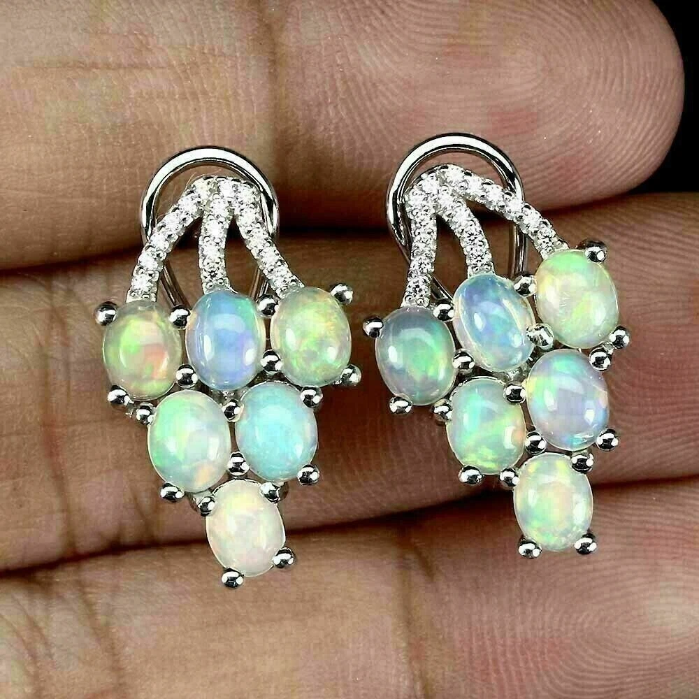 Ear Area: Lobe Country of Origin: Ethiopia Number of Gemstones: 44 Colour: White with Fire Lustre Style: Stick Item Length: 22 mm Total Carat Weight: 4.3 ctw Metal: Sterling Silver Coloured Diamond Intensity: 0 Setting Style: Prong Hallmarked: Yes Main Stone: Opal Certification: No MPN: Does Not Apply Material: Gemstone Secondary Stone: Created White Zircon Stones Cut Grade: Very Good Diamond Colour Grade: 0 Metal Purity: 925 parts per 1000 Closure: English Lock Number of Diamonds: 0 Base Metal: Sterling Silver Brand: Unbranded Main Stone Treatment: Not Treated Main Stone Shape: Oval Main Stone Creation: Natural Diamond Clarity Grade: 0 Type: Earrings Features: Nickel-Free Main Stone Colour: White