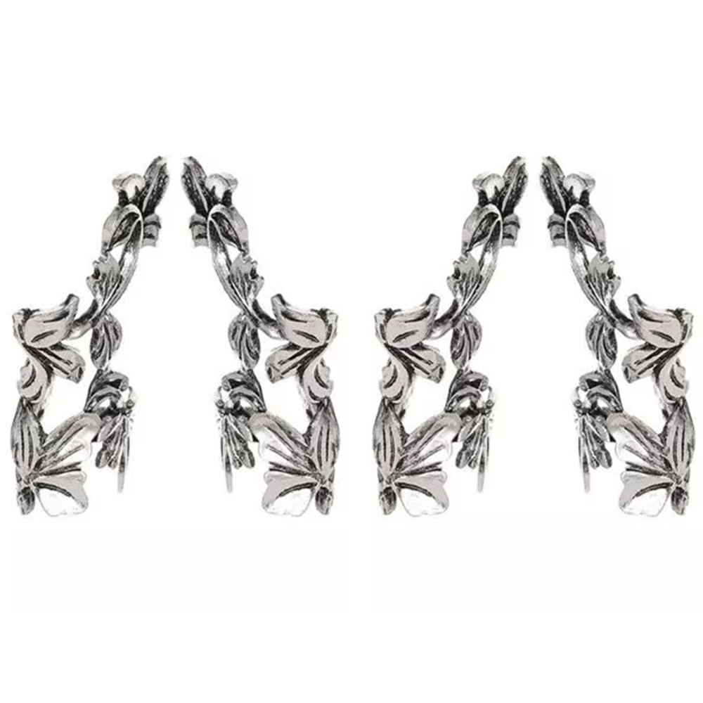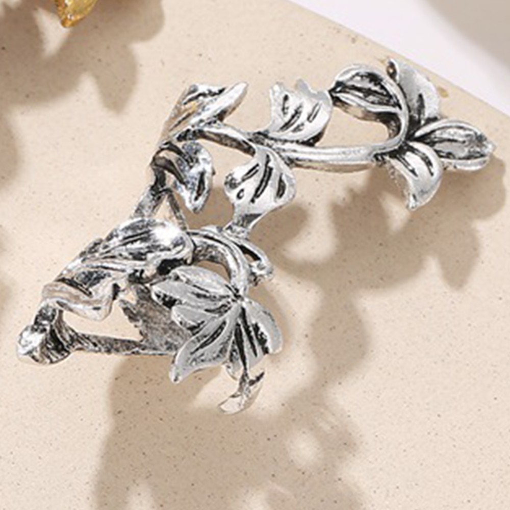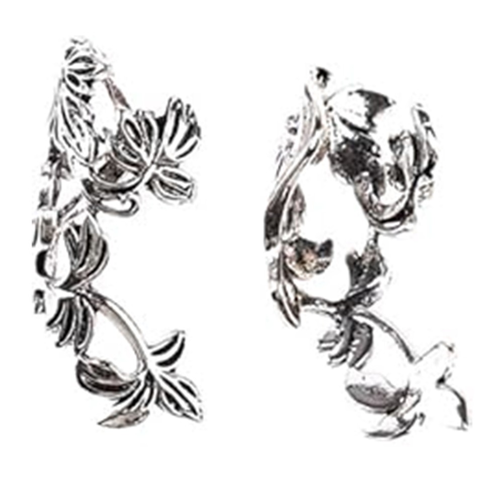 Silver Floral Hollow Flower Leaf Clip-On Ear Cuff No Piercing Required