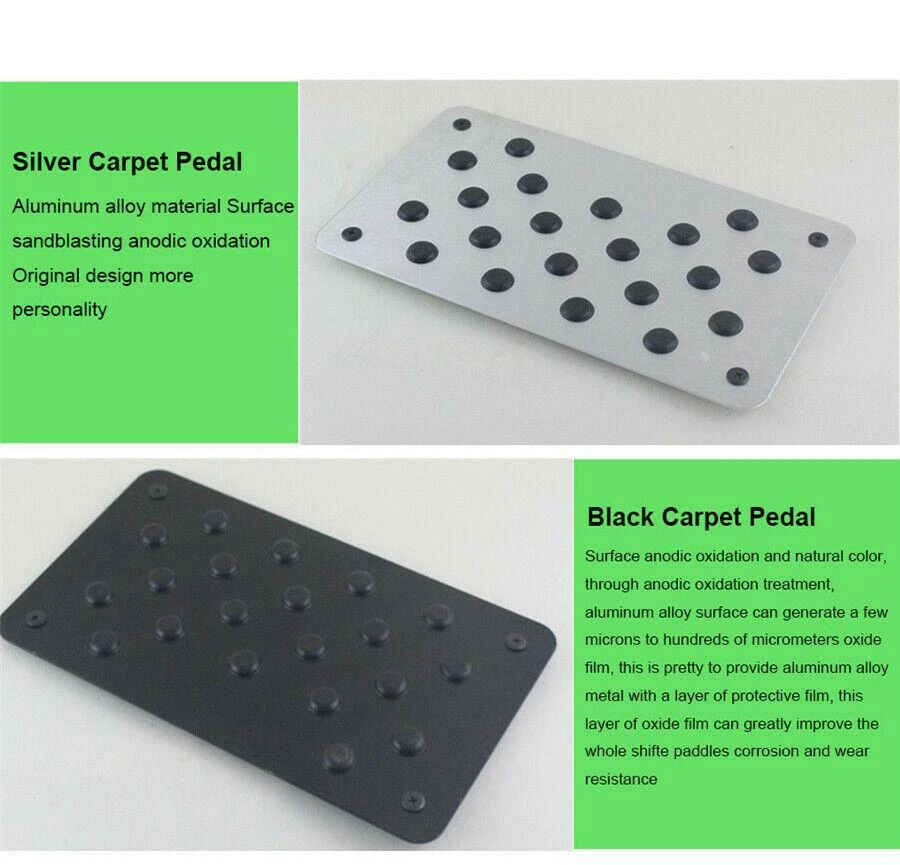 Product Description Universal Aluminum Anti-skid Pedal Pad Foot Heel Scuff Plate Silver Car Floor Mat Non-slip Carpet Patch Interior Accessories 28*16cm Add our listing to Watchlist Or Add to Cart , you will get more discount Specification 1. adaptable model: All Cars 2.Non-slip 3.Aluminium Alloy car pedal,surface brushed treatment & Anodic oxidation process eterior wear-resisting & high grade polypropylene 4.Easy to install 5.Color: Silver 6.Size:28*16*0.2cm Material 1. Aluminum alloy:excellent powerful look, to improve pedal grip, to provide much better anti-slip 2. Wearing proof preservative: to increase foot pedal surface coefficient of friction to enhance driving safety 3. High-quality rubber: with a strong sense of buffering capacity, to make driving easier and let you have good feeling eBay Cross Border Trade powered by ChannelEffect