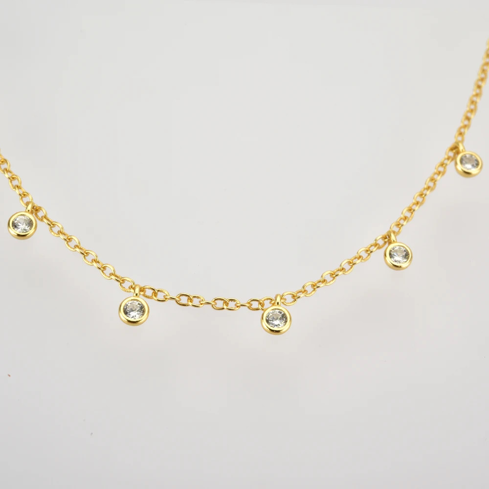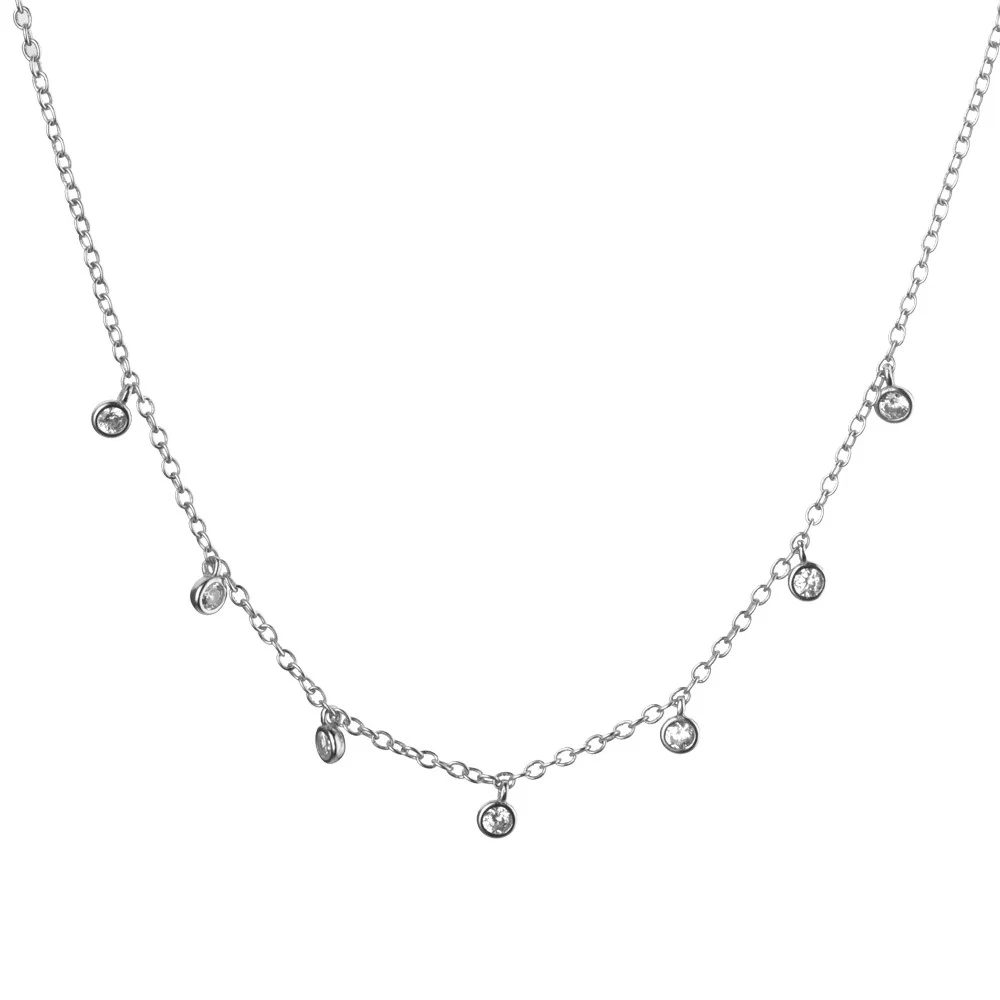 $ 7.48Silver Zircon CZ Charm Choker Long Chain Necklace Anniversary Fine Fine
