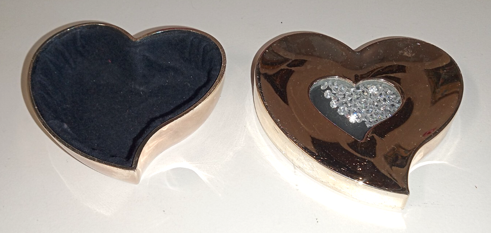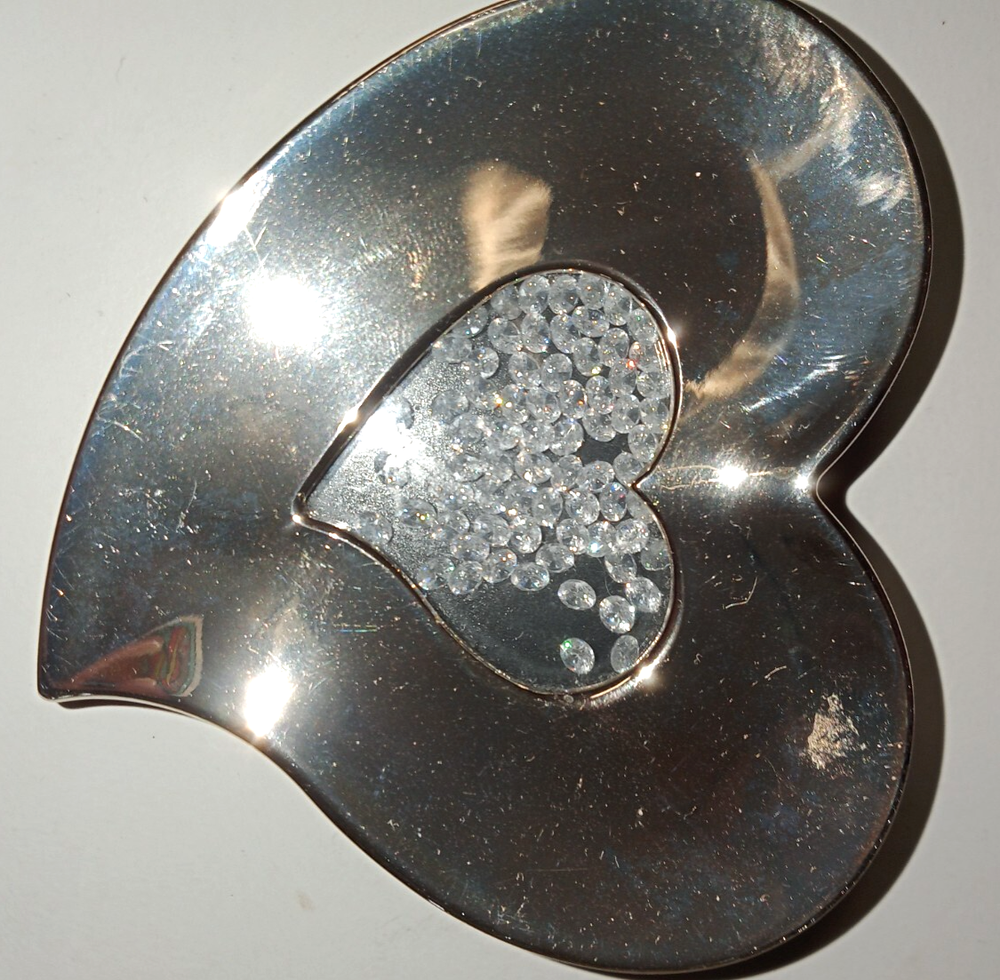 Silver Heart with Floating Crystals Trinket Box. Just beautiful heart shaped trinket box. Good for jewelry or as a keepsake box. Can be for all occasions. Birthday, &/or Valentines day.