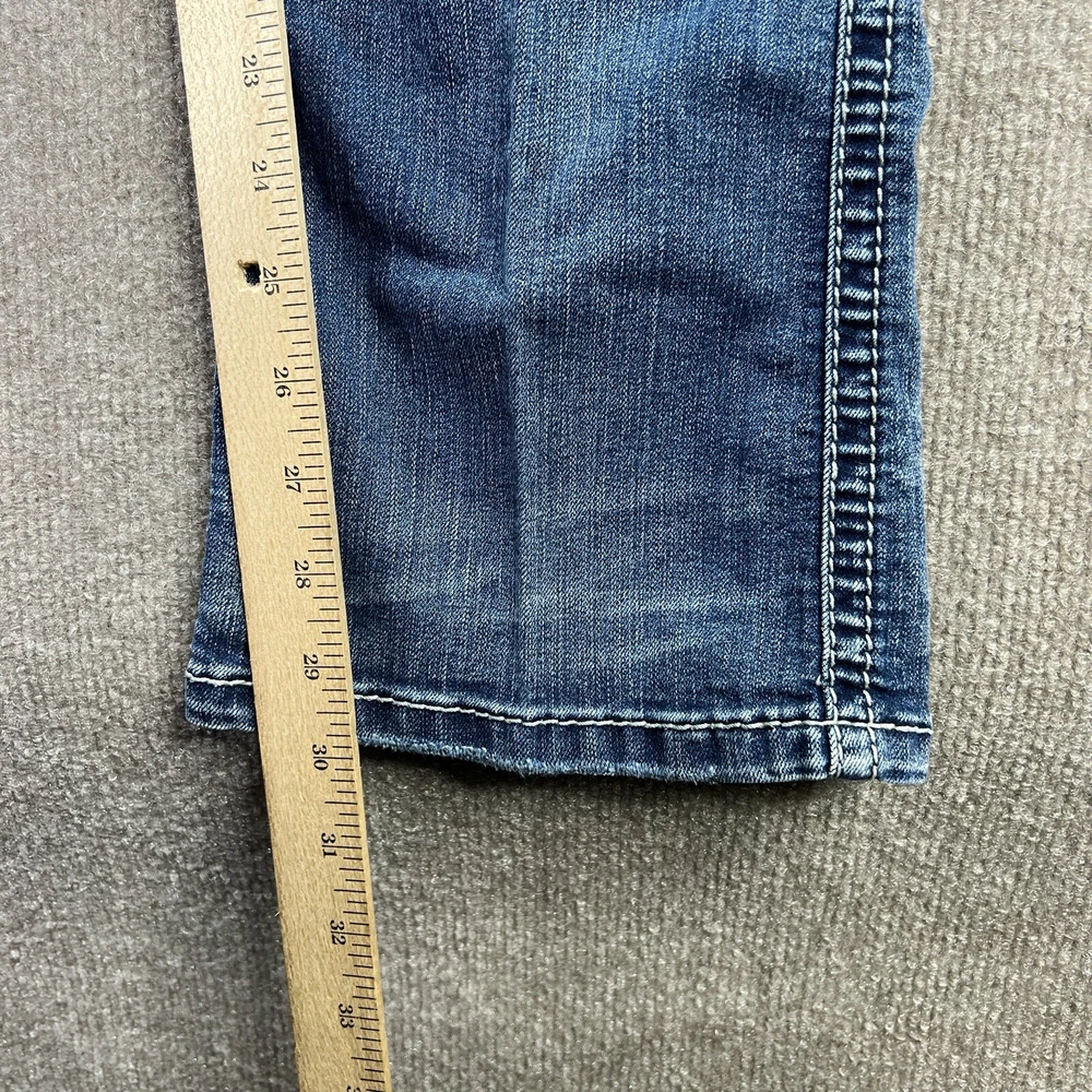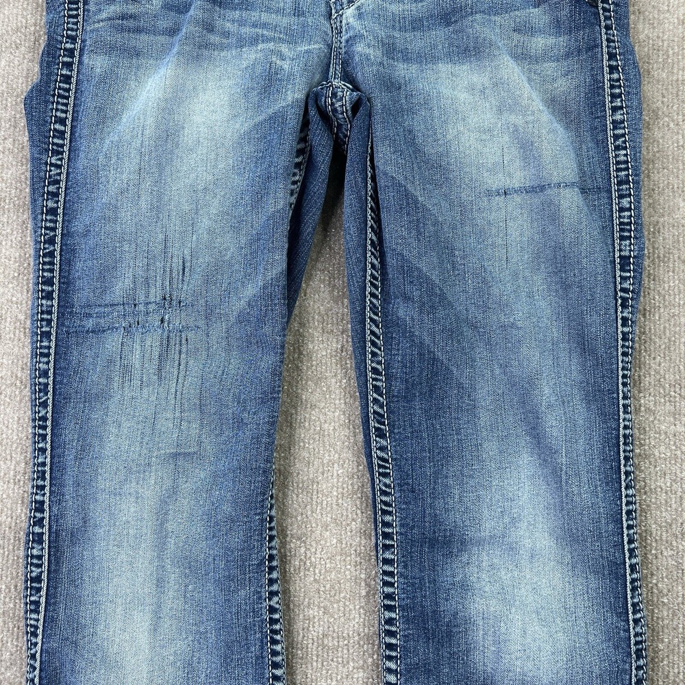 Love these Silver Jeans! The dark wash and subtle distressing give them a stylish, lived-in look, while the low bootcut and stretch make them super comfortable. The fit is true to size as described—check the measurements for the perfect match. Seller ships fast, and the pre-owned condition is just as shown. Great pair at a fair price!