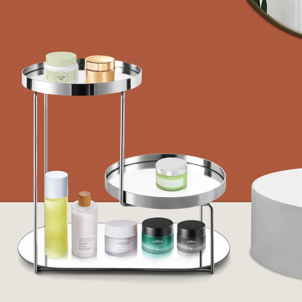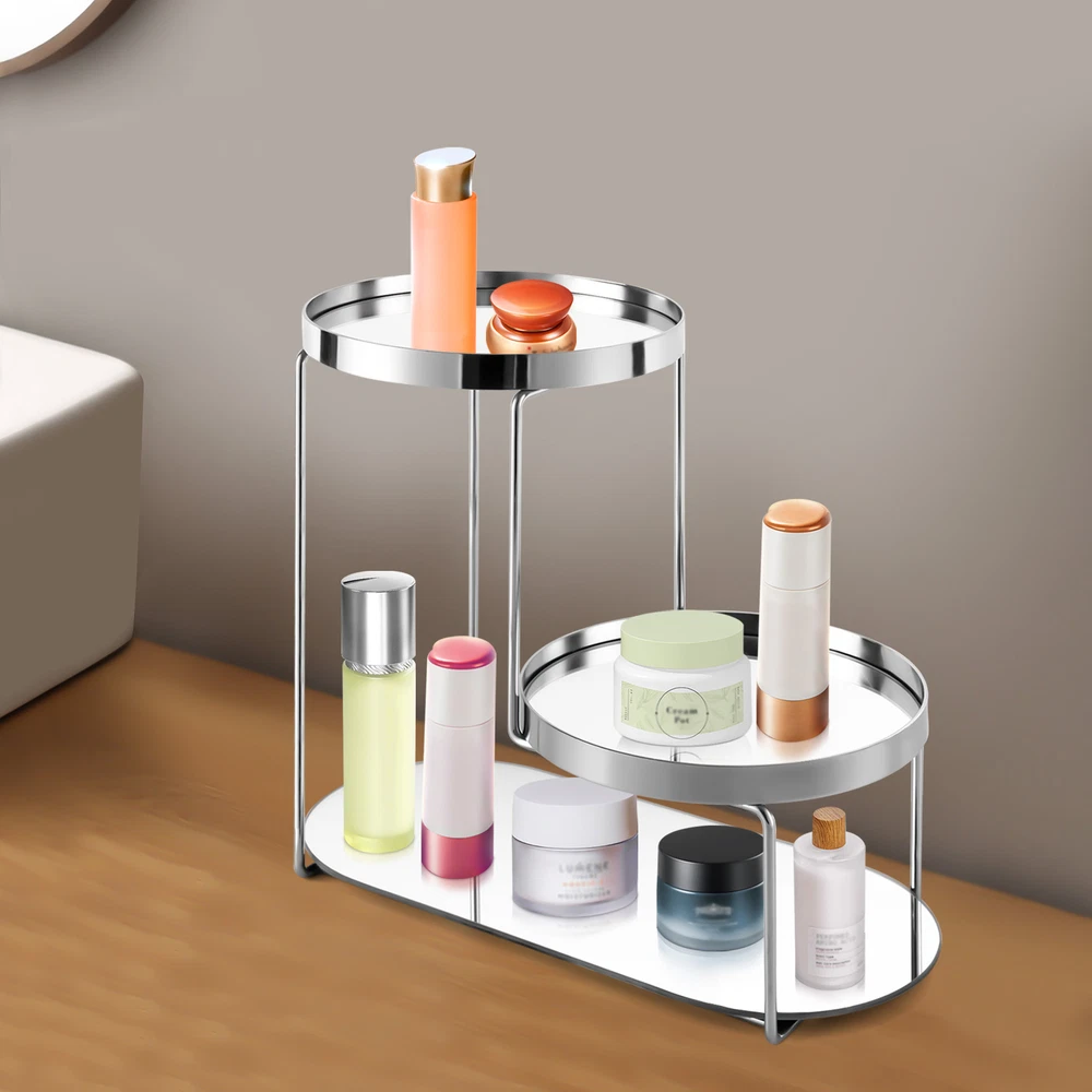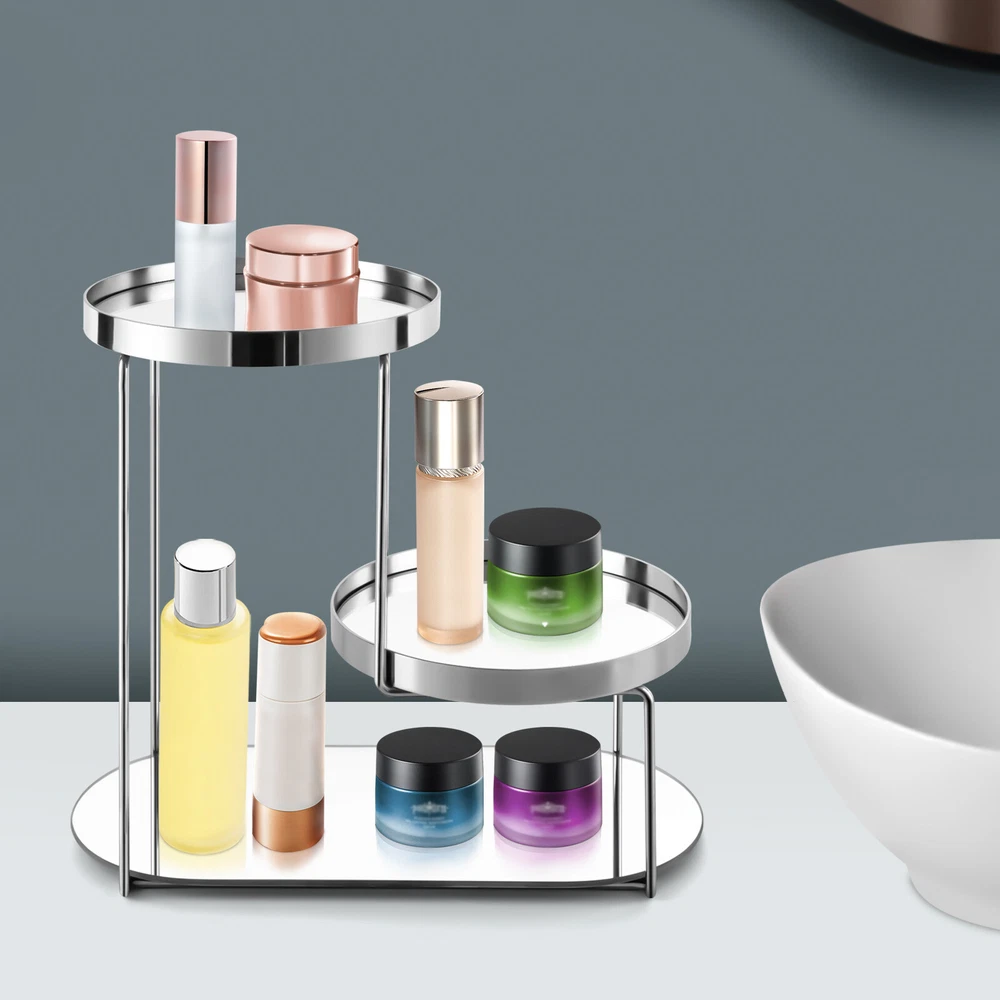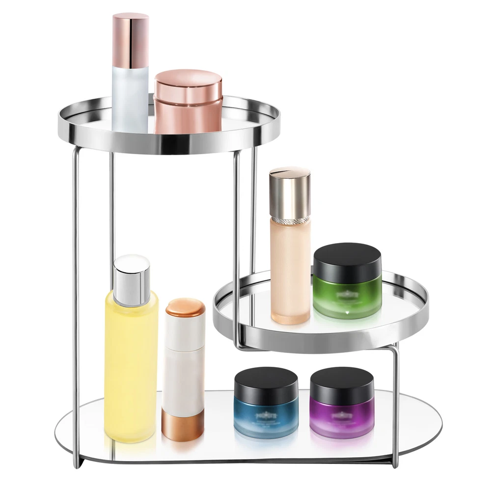 Silver Makeup Organizer Rack for Bathroom Countertop Display
