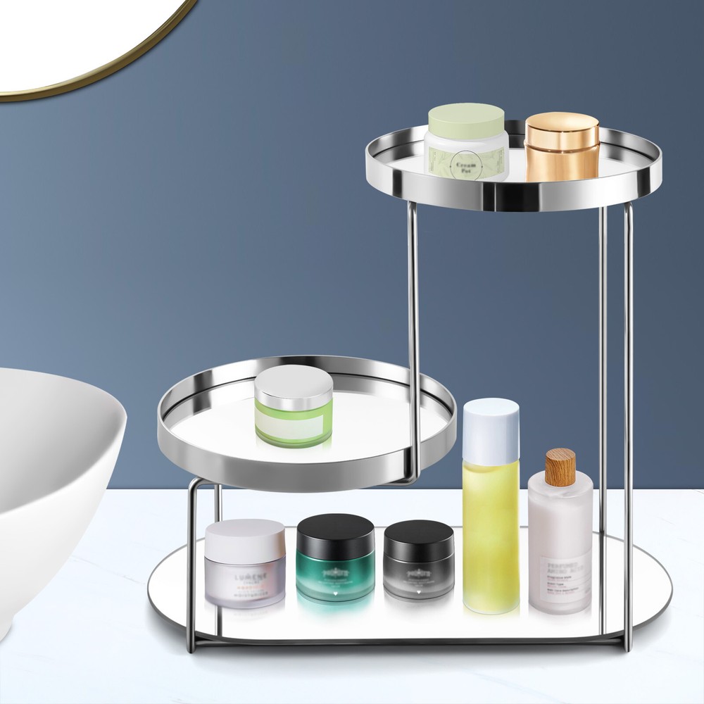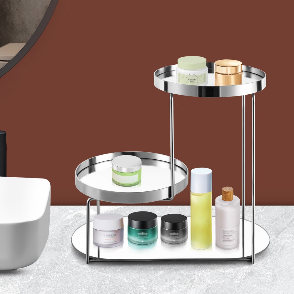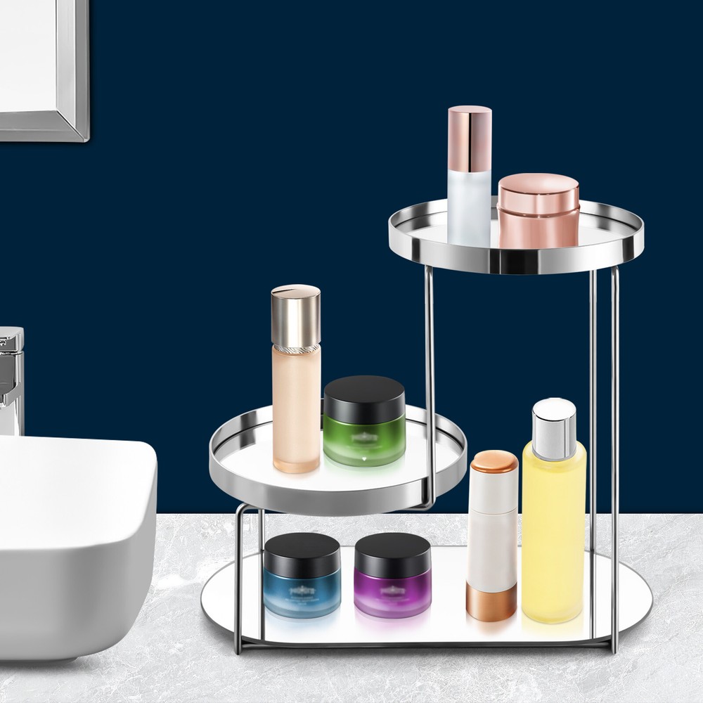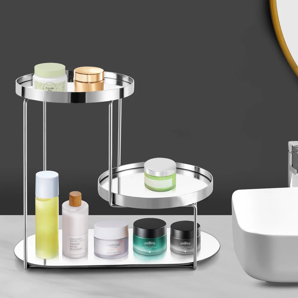 Silver Makeup Organizer Rack for Bathroom Countertop Display
