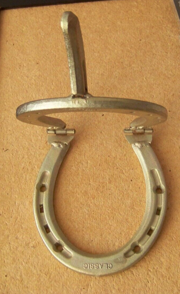 horseshoe door knocker silver color or coat hook, metal, hinged This piece measures about 7" tall on a 4.5" wide. Minor nicks and marks. Don’t forget to click on my "Stores" link, next to my eBay name, to see other items I currently have listed for sale, or you can copy and paste this address into your browser: stores.ebay.com/highcountrycollectibles SHIPPING INFORMATION Shipping to U.S. addresses is FREE! HIGH COUNTRY COLLECTIBLES Since 1989 – A LEADER IN THE DENVER SPORTS MEMORABILIA MARKET. Check out my other auctions and listings, and keep an eye out for the different, unusual, and EXCLUSIVE items available nowhere else but from High Country Collectibles.