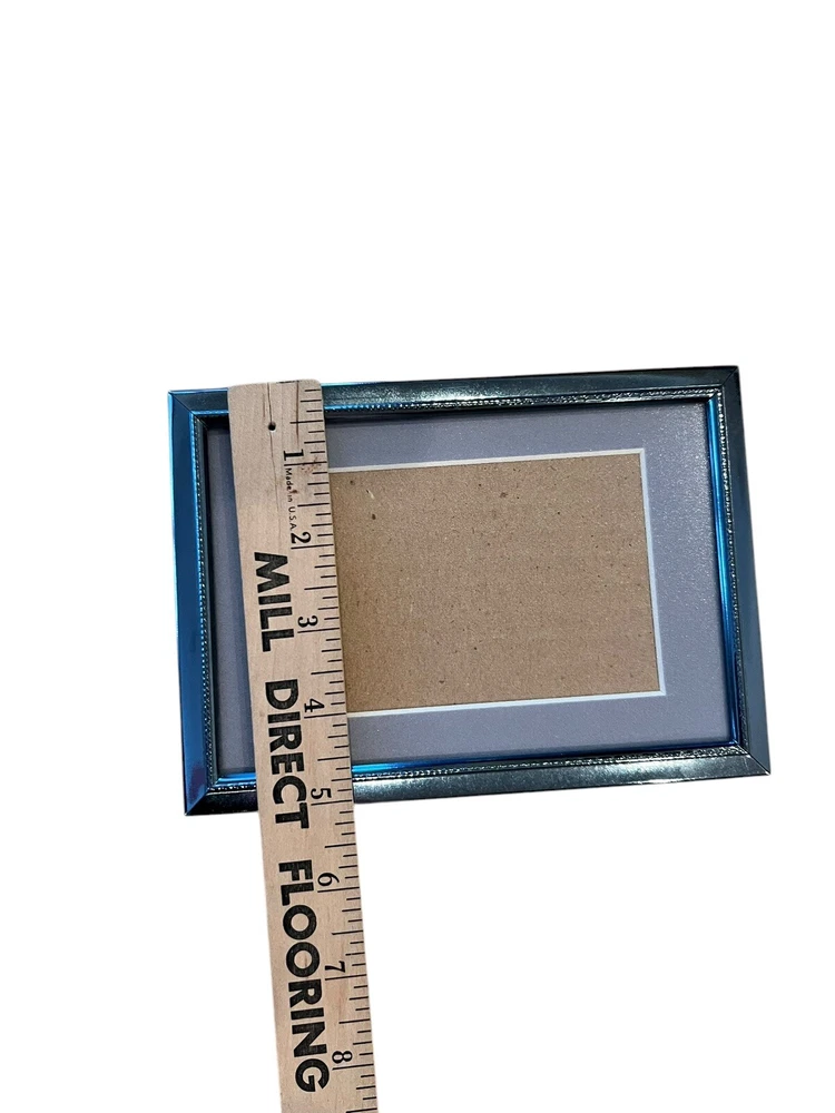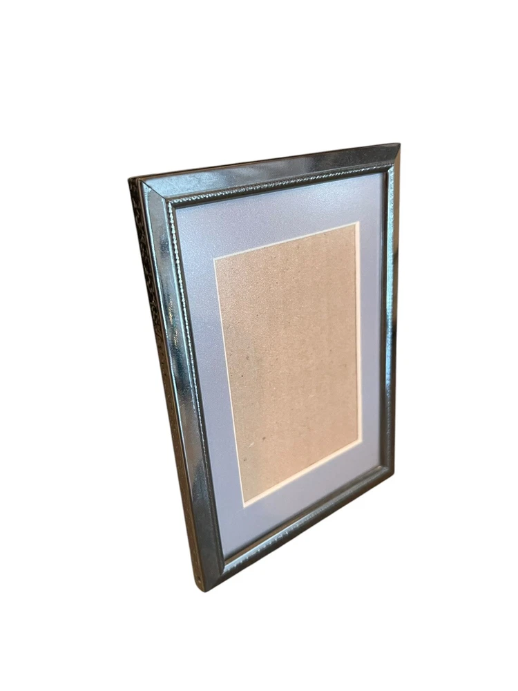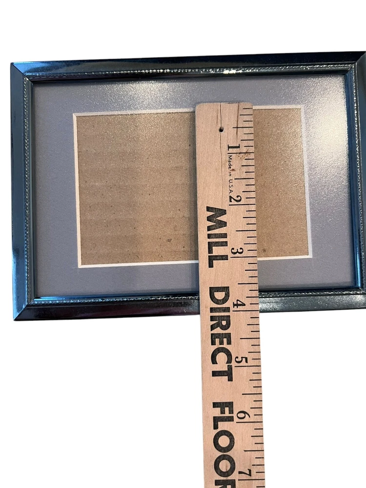 Silver Metal Matted Picture Frame W/ Gray Mat 4.5” X 3” Photo. Full Size 5” X 7”