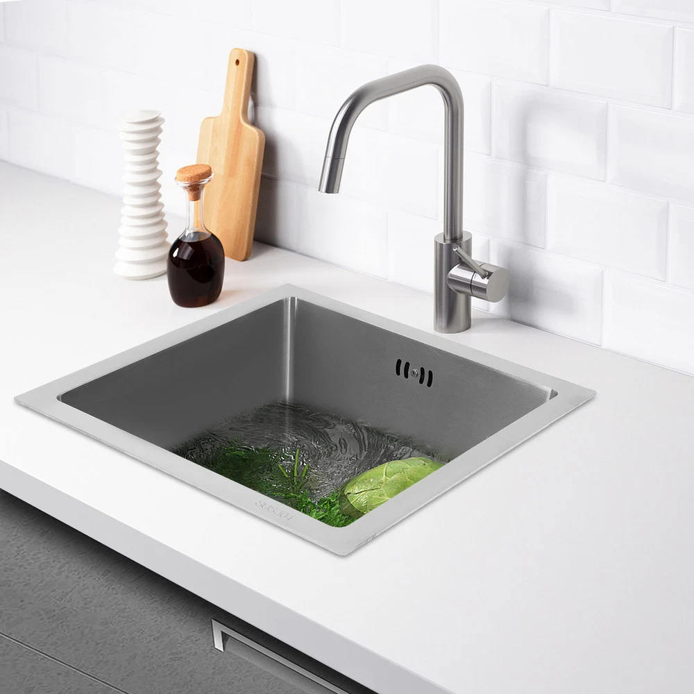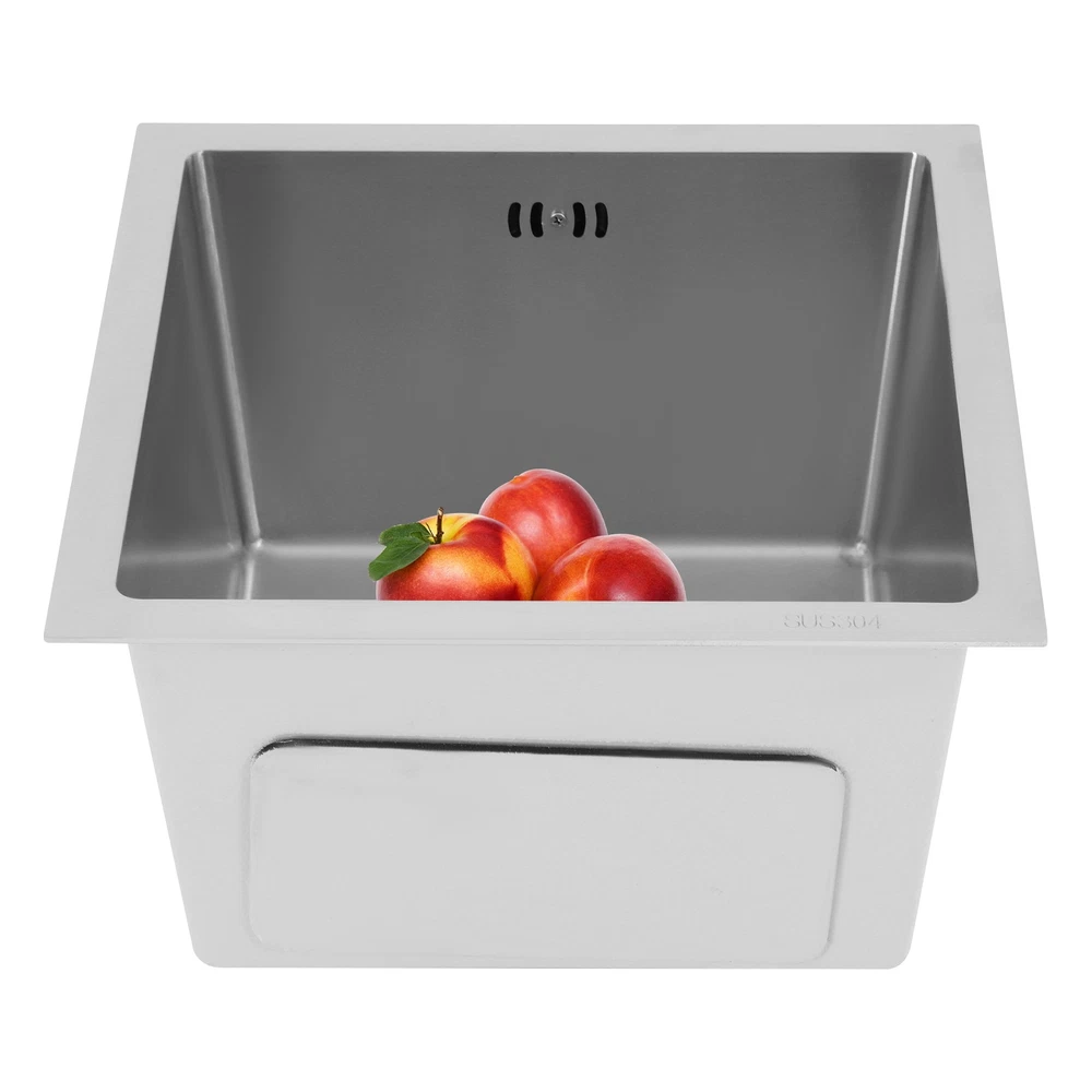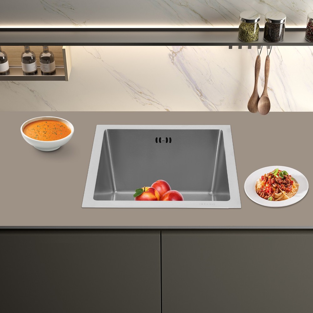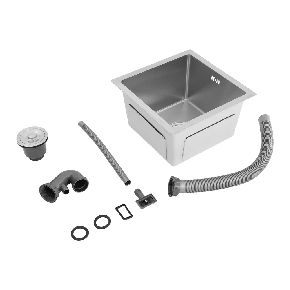 Silver Modern Kitchen Sink, Sink, Multifunctional Stainless Steel Sink 🎄🎄Welcome to our store🎄🎄 Description Th e kitchen sink is like a loyal and capable "cleaning little guard", always ready to help you easily handle the kitchen cleaning tasks! With its outstanding quality and practical design, it creates an efficient, convenient, and beautiful kitchen cleaning space for you . In the kitchen, there is a silent yet powerful helper you simply can’t live without – the sink! Like a loyal, capable "cleaning guardian," it stands ready to help you tackle kitchen cleaning tasks with ease. Just look at this kitchen sink: its exceptional quality and practical design create an efficient, convenient, and beautiful kitchen cleaning space for you. Key Features Sturdy and Robust: 304 stainless steel combined with a PVD process make the sink fight rust, easy to clean, strong and robust, so it can be used in a wet kitchen confidently. High-Strength and Enduring : Crafted from 304 stainless steel, with a PVD finish, this sink stands up to rust, wipes clean easily, and boasts exceptional sturdiness, letting you use it with confidence in the wet, high-use kitchen environment. Efficient Drainage: The enlarged drain openings (4.33 in ches) and a slightly sloped bottom with X-shaped guide water line design ensure quick drainage, while the drainer basket can prevent large residues from flowing into the pipe, preventing blocking. This V-shaped drain pipe design not only serves as a barrier that effectively prevents odors from flowing back, but also better adapts to the spatial installation needs. Optimized Drainage Mechanism: Boasting enla rged 4.33-inch drain openings, a subtly sloped basin bottom with an X-shaped water guide design, this sink ensures rapid water flow. The drain basket traps large food residues, stopping them from clogging the pipes. Additionally, the V-shaped drain pipe acts as a reliable odor barrier to prevent backflow while fitting with various under-sink installation space s. Large Capacity : Measuring 14.96*14.96*8.66 inches, this sink offers ample space to meet daily washing requirements and facilitates multiple tasks. Kitchen Sidekick: Boasting a total generous 14.96*14.96*8.66 -inch size, this sink meets most daily washing demands. It supports multi-tasking, effectively boosting kitchen efficiency. Modern Minimalist Design: This product adopts a minimalist style, with smooth lines and a simple and elegant shape, which can easily integrate into various kitchen decoration styles. Contemporary Minimalist Aesthetic: Featuring clean lines and a sleek, understated form, this product embodies modern minimalism, greatly blending with a wide range of kitchen décor styles. Carefully Designed : The sound-absorbing pads can effectively reduce the noise generated by the faucet water release and the collision of dishes. The condensation prevention layer can prevent condensation, keep the sink dry, and avoid cabinet deformation. User-Centered Design: Equipped with a sound-absorbing rubber pad design, it effectively mutes the noise of water flowing from the faucet and dishes colliding, creating a peaceful kitchen space. The condensation prevention layer stops condensation to keep the sink dry, avoiding cabinet deformation caused by dampness. Details Overflow Holes: This design prevents water from overflowing and protects the floor and countertop from getting wet. Convenient Overflow Holes: Designed with overflow holes, this prevents water from overflowing and ensures a tidier kitchen. Round Corners: The sink's round corner design eliminates hard-to-reach sharp corners, making cleaning a breeze. Elegant Arcs and Delicate Edges: The sink’s rounded corner design eliminates hard-to-clean sharp edges, making daily scrubbing and maintenance easy. Application It is ideal for washing bowls, fruits, vegetables, etc. It can be used in home kitchens, restaurants, dessert shops, cafes, bars, and more. Package Included 1* Sink All Accessories for Assembly Notes Please check the size carefully before ordering. Measure the opening of the base cabinet in advance to ensure smooth installation of the sink. Please note that this set does not include a soap dispenser, a faucet, or a water purification faucet, etc. Please do not scratch its surface with sharp objects for a longer service life. Please allow the slight color difference caused by the shooting light and a 1-3 cm error due to manual measurement, and make sure you do not mind before ordering. Payment Delivery details Terms of sales About us Contact us Payment We accept ebay payment 。 Fees such as import duties, taxes are not included in the item price or shipping costs. These charges are the buyer's responsibility. Delivery details Shipping: 2-9 working days to: USA Terms of sales We maintain high standards of excellence and strive for hundred percent customer satisfaction. Feedback is very important to us. We hope that you contact us immediately before you give neutral or negative feedback, so that we can address your concerns. It is impossible to address issues if we do not know about them! About us Your satis faction is our ultimate goal. We work hard to earn your trust and future business. Our certified technicians have tested each item before shipping. The unit comes with 1 year limited warranty on all manufacturing defects. a) If you receive a defective item, you may return it or ask for a discount. Please contact us within 14 days after you receive the package. b) What you returned must be intact and in its original packaging as re? u. Customer is responsible for shipping costs of the returned item. c) We will cover the cost of shipping back t with the shipping rate indicated in the registration page. We will send you a new unit or refund the full payment you paid. Thank you. Contact us Business Hour Business Hour: Monday To Friday: 8:30 AM to 5:00 PM (Beijing China time) Due to time zones, our reply to your questions may not be imm
