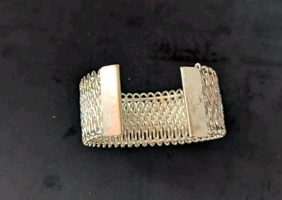 A silver color adjustable open-cuff bangle with some signs of wear on the bottom of the bangle (please refer to images for exact wear/scratches) Color: Silver color Style: open cuff bangle Metal: Unknown Size/Measurements: Please refer to photos; adjustable Condition: Used, good --> Offers welcome!! *Fast Shipping! **Boutique Packaging** ***Smoke-free, Pet-free household ****DISCOUNTS ON BUNDLES AND REDUCED SHIPPING!!**** Tags: Silver, silver color, cuff, open cuff, bracelet, bangle, special occasion, birthday, gift, party, everyday wear, classic, classy, wedding, vacation, quiet luxury, baby shower, bride, bridal shower, bridesmaid, party I do my best to ensure the photos listed are as true to color as possible. With variations in different monitors, lighting sources, digital photography, product color may slightly vary.
