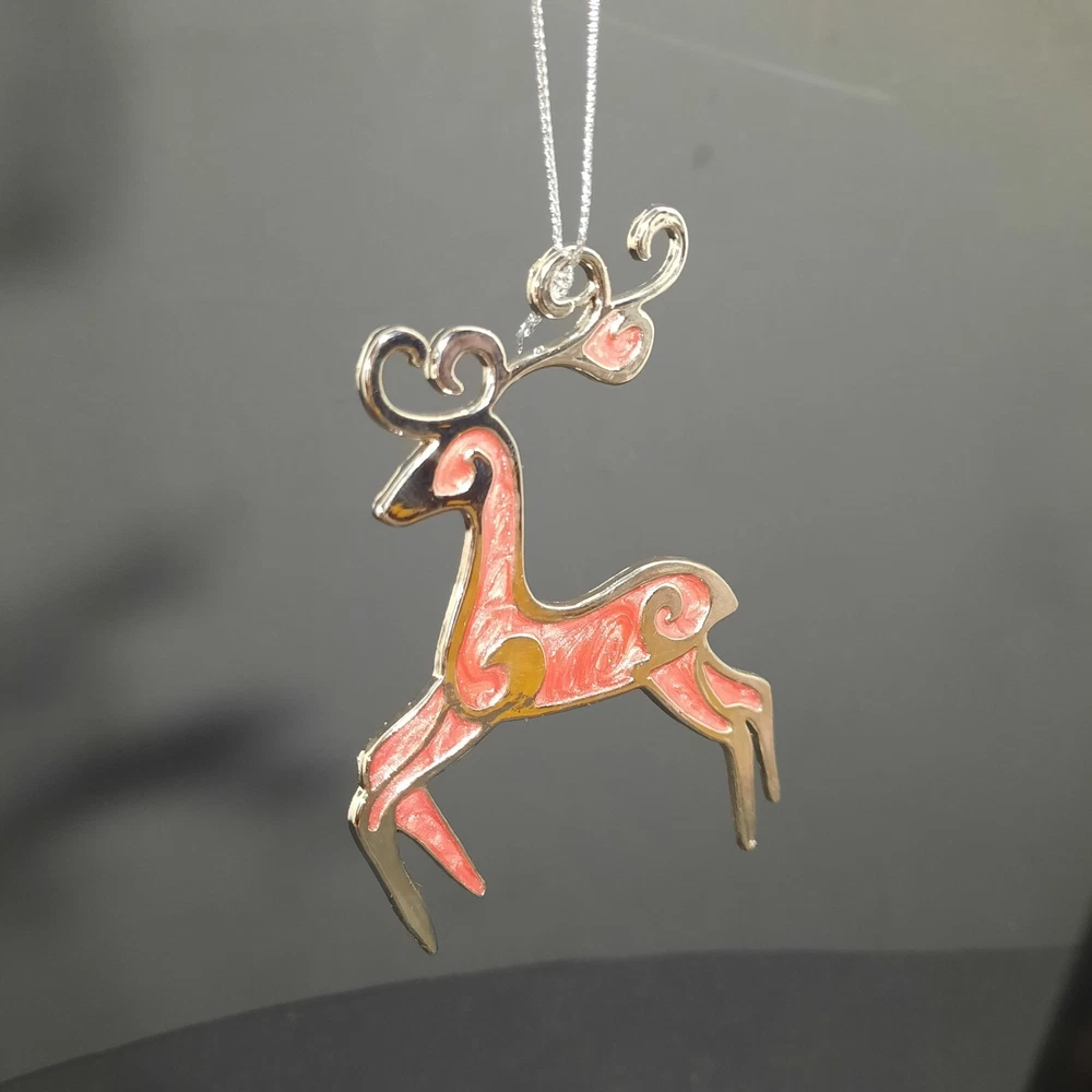 Theme: Christmas Subject: Reindeer Shape: Reindeer Occasion: Christmas Color: Pink Material: Silver Collection: Ornaments Type: Ornament