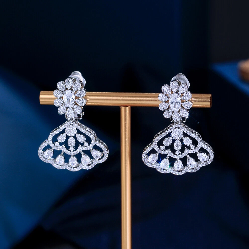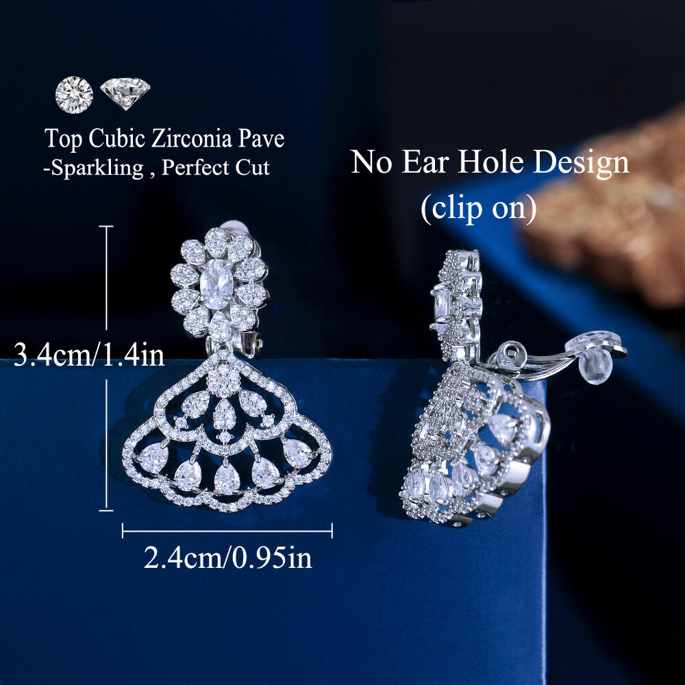 Silver Plated CZ Fan Shaped Drop Clip On Earrings No Ear Hole Without Piercing Specifications: 1. Condition: New 2. Material: Cubic Zirconia 3. Earring Size : 3.4 cm/1.4 inch*2.4 cm/0.95 inch 4. Wearing Occasion: Wedding / Daily Wear / Office / Anniversary / Party/ Engagement / Christmas 5. Fit for: Women ,Bride , Bridesmaid , Girls , Mother , Wife , Lover , Fiancee , Friends . Features: 1. 100% Brand new and high quality. 2. Brillant Simulated Diamond - Top Level Cubic Zirconia. Excellent Cut Simulated Diamond. Enjoy the Dazzling Sparkle from Cubic Zirconia Clip on Earrings. 3. Our Fashion Clip on Earrings are suitable for all non Pierced Ears. 4. Perfect for Various Occasions: Ideal for Bridal, Wedding, Prom, Parties, Holidays, Special Occasions, Birthday, Valentine's Day, Mother's Day or Anniversary Gifts. Package Includes: 1 Pair of Clip on Earrings Payment Delivery details Terms of sales & Feedbacks About us & Contact us Our commitment Payment 1. We only ship item to your Ebay verified address . Please Make sure all address are the same 2.Please leave note in ebay when making the payment if you have any special request (colors/size). Delivery details We only send items to the registered eBay address.Items will be shipped within 2 business days from the date payment is received (not include public holiday and weekend) . As per eBay regulations, import duties, taxes, and customs charges are the buyer's responsibility. Please check with your country's customs office to determine what these additional costs may be prior to bidding or buying. Terms of sales & Feedbacks After-Sale Please contact us to request a return/replace/refund authorization .It will be best if you use ebay message to contact me. 1, Return and replacement request is available only the requests within 30 days after parcel received. 2, Returning the item as the same condition as received. Situation and solution Defectives ---Please contact us and provide a photo of the defective part. After situation confirmed,we will offer you refund/return/replacement according to the situation Not as Described ---Please contact us and provide a photo of the wrong part. After situation confirmed,we will offer you refund/return/replacement according to the situation Not Received ---Please undersatnding shipping on the way was out of our control ,because of the busy shipping season,holidays,bad weather or force majeure etc. It may be delay for days. But if it took too much time and not deliveried, Please message me, I will offer you solution for it. Feedbacks 1. If you are satisfied with our service, please leave us a + Good feedback and rate the details of the transaction (DSR) with a. . When you rate the shipping time part please take international transit into consideration.] Your recognition will make us more confident to develop business and serve you better. 2. Please contact us first if you have any problem with the items,we will solve it in time ! 3. Please do not leave Neutral or Negative Feedback before you contact us, Thanks For Your Business ! About us & Contact us Working time: Chinese time(Eastern eight zones):Monday to Friday ,9:00 am to 6:00 pm. We do not work on chinese legal holiday. Message reply: We will reply all messages within 24 hours of business time. Please contact us via ebay message, it was the best way for both you and us to solve problems. Any questions or anything you need, please feel free to contact us. Our commitment 1.Wholesale price will be offered to you if you need in bulk ! 2.About Size