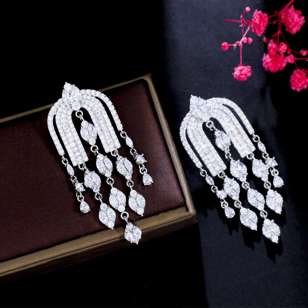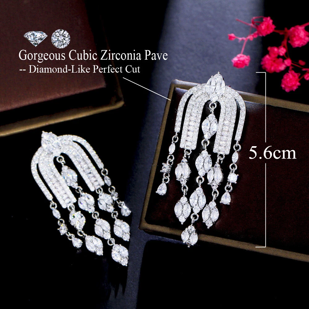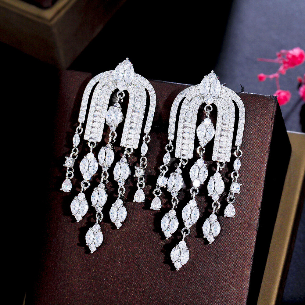 Silver Plated Cubic Zircon Tassel Dangle Long Drop Chandelier Earrings for Women There’s an old saying that: Jewelry is woman’s best friend. And one appropriate luxury jewelry helps to spice up your charm and beauty. And here’s the reason why you choose us: ★ We adopts high-grade Cubic Zirconia, which displays pure and fascinating color; ★ All our items are Elaborate, Gold Plated (white gold plated/yellow gold plated/black gold plated), by which the texture is smooth and with fancy look, and will be appropriate for so many occasions; ★ Our items are with Exquisite Design, which shows your excellent taste, and could catch people’s attention easily. ★ Ideal gift for mother, wife, girlfriend, daughters, brides, bridesmaids, ect. Specification Type: Dangle/Drop Earrings Stone Material: Cubic Zirconia Base Metal Material: Brass Metal Material: Silver Plated Shape: Chandelier Color: White Suitable Occasion: Daily, Holidays, Party, Engagement, Wedding, Anniversary, Valentine’s Day, Carnival, Performance, ect. Package Includes 1 Pair of CZ Drop Earrings Please note: *Please bear in mind that there might be 1~2cm difference due to manual measurement. *Our digital images are as accurate as possible. However, different monitors may cause colors to vary slightly. *We offer after-sale service, if there is any item problem, please feel free to contact us via eBay message first, your kind understanding is much About Us Payment Shipping Returns Contact us About Us Topjewel33 is a newly-established online store which dedicates to provide excellent luxury jewelry products, such as earrings, rings, necklaces, bracelets, brooches, hair accessories, and high grade jewelry sets. We target worldwide market, and we strive for offering you unbeatable low price and satisfied customer service. Payment We accept PayPal payment only. Payment must be received within 7 days from the date of purchase. Shipping We do hope all our customers could receive the order asap, so normally, the order will be sent out within 2 working days. And as the delivery is handled by the third party, sorry that we could not guarantee which date you could receive the package. And sometimes the delivery might be a little bit delay, especially in high volume or holiday seasons. However, please don’t worry and feel free to contact us via eBay message, and we will do our best to help. And we sincerely apologize for any inconvenience may cause. Sometimes custom tax might be required, and we are afraid that it will be covered by the buyers, thank you for kind understanding. Returns We provide 30 days money back return policy. And if you have any problem with the item, please make sure the item is in the original package and feel free to contact us via eBay message first, thank you for kind understanding and cooperation. Contact us We offer customer service, if you have any problem with the item before/during/after the purchase, please feel free to contact us via eBay message, and we will get back to you asap. Thank you for your kind patience.