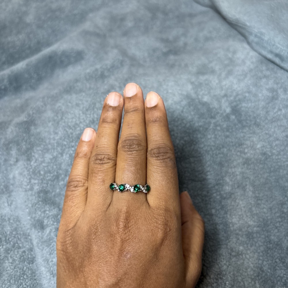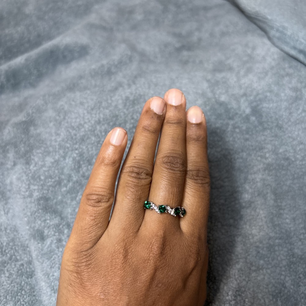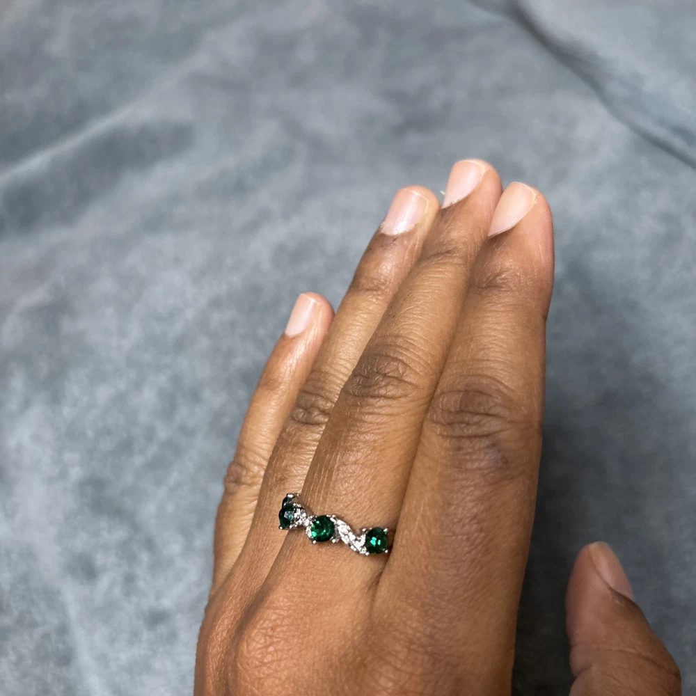 This stunning silver-plated ring is the perfect addition to any jewelry collection. Adorned with a beautiful emerald stone and intricate zircon detailing, this piece is sure to catch the eye. The ring is crafted from high-quality materials, including stone and silver, ensuring both durability and style. With a ring size of 7, this piece is perfect for those who love to accessorize with unique and elegant pieces. The silver color adds a touch of sophistication to any outfit, while the emerald stone adds a pop of color. Ideal for those who love to make a statement with their jewelry, this ring is perfect for any occasion.