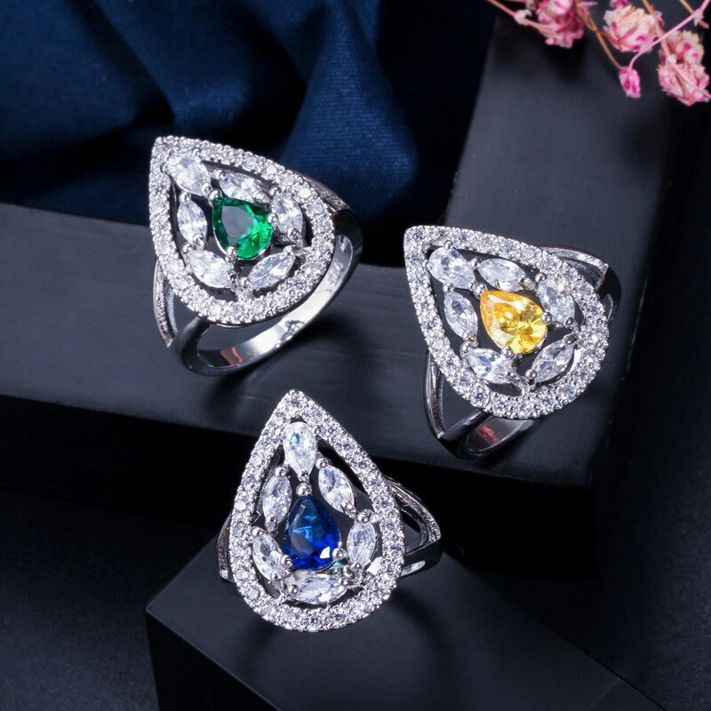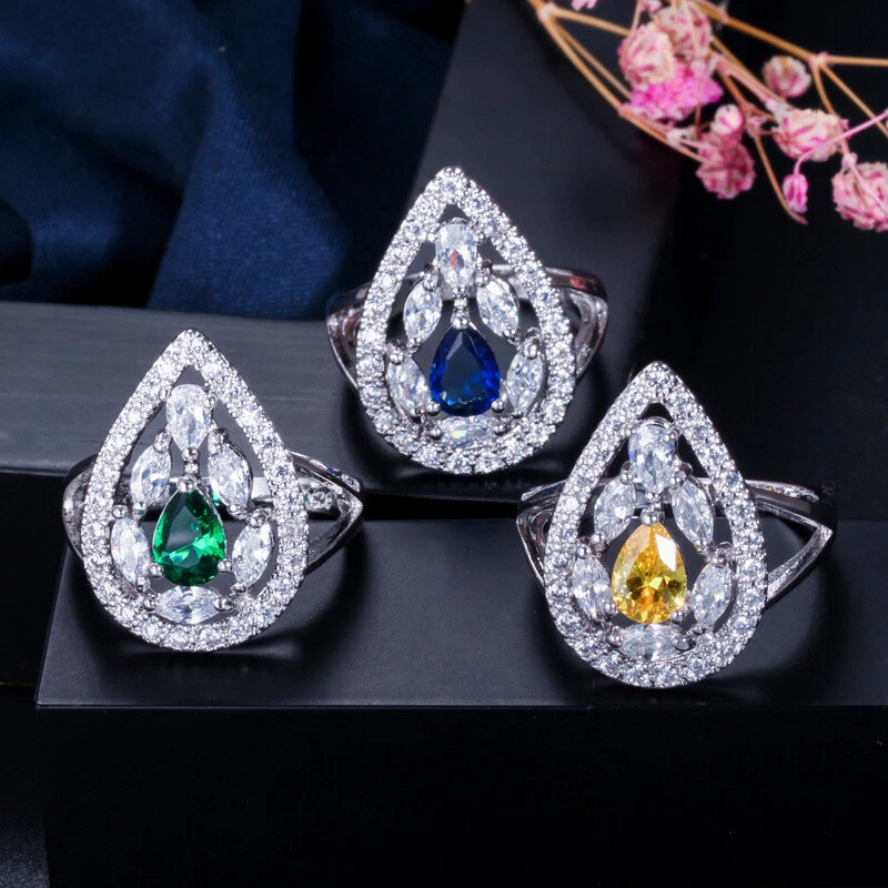 Silver Plated Hollow Out Water Drop Cubic Zirconia Women CZ Ring Costume Jewelry There’s an old saying that: Jewelry is woman’s best friend. And one appropriate luxury jewelry helps to spice up your charm and beauty. And here’s the reason why you choose us: ★ We adopts high-grade Cubic Zirconia, which displays pure and fascinating color; ★ All our items are Elaborate, Gold Plated (white gold plated/yellow gold plated/black gold plated), by which the texture is smooth and with fancy look, and will be appropriate for so many occasions; ★ Our items are with Exquisite Design, which shows your excellent taste, and could catch people’s attention easily. ★ Ideal gift for mother, wife, girlfriend, daughters, brides, bridesmaids, ect. Specification Type: Women Rings Stone Material: Cubic Zirconia Base Metal Material: Brass Metal Material: Silver Plated Shape: Water Drop Color: Yellow, Blue, Green Suitable Occasion: Daily, Holidays, Party, Engagement, Wedding, Anniversary, Valentine’s Day, Carnival, Performance, ect. Package Includes 1 Piece of CZ Rings Please note: *Please bear in mind that there might be 1~2cm difference due to manual measurement. *Our digital images are as accurate as possible. However, different monitors may cause colors to vary slightly. *We offer after-sale service, if there is any item problem, please feel free to contact us via eBay message first, your kind understanding is much appreciated. About Us Payment Shipping Returns Contact us About Us Topjewel33 is a newly-established online store which dedicates to provide excellent luxury jewelry products, such as earrings, rings, necklaces, bracelets, brooches, hair accessories, and high grade jewelry sets. We target worldwide market, and we strive for offering you unbeatable low price and satisfied customer service. Payment We accept PayPal payment only. Payment must be received within 7 days from the date of purchase. Shipping We do hope all our customers could receive the order asap, so normally, the order will be sent out within 2 working days. And as the delivery is handled by the third party, sorry that we could not guarantee which date you could receive the package. And sometimes the delivery might be a little bit delay, especially in high volume or holiday seasons. However, please don’t worry and feel free to contact us via eBay message, and we will do our best to help. And we sincerely apologize for any inconvenience may cause. Sometimes custom tax might be required, and we are afraid that it will be covered by the buyers, thank you for kind understanding. Returns We provide 30 days money back return policy. And if you have any problem with the item, please make sure the item is in the original package and feel free to contact us via eBay message first, thank you for kind understanding and cooperation. Contact us We offer customer service, if you have any problem with the item before/during/after the purchase, please feel free to contact us via eBay message, and we will get back to you asap. Thank you for your kind patience.