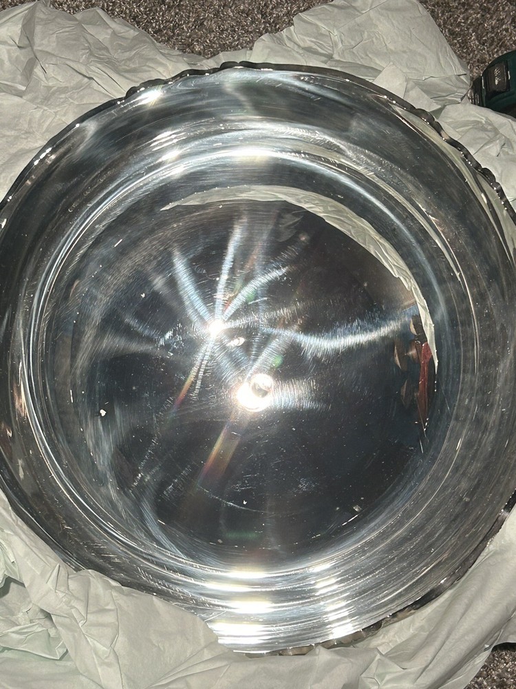 This set a punch bowl with the platter and 12 of the 13 cups are in mint condition is never been used. It was received from home interiors and gifts from using silver certificates to purchase it pre-2 000s.