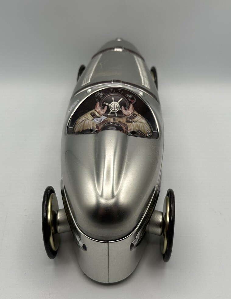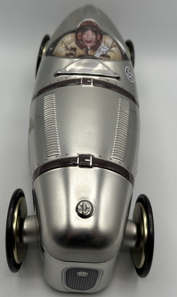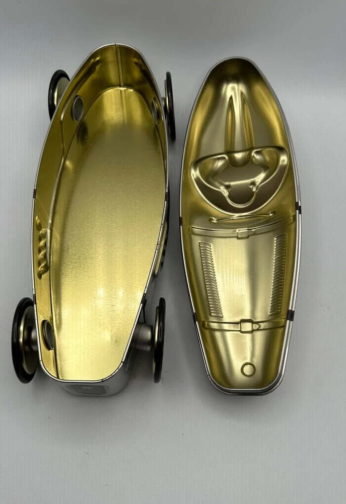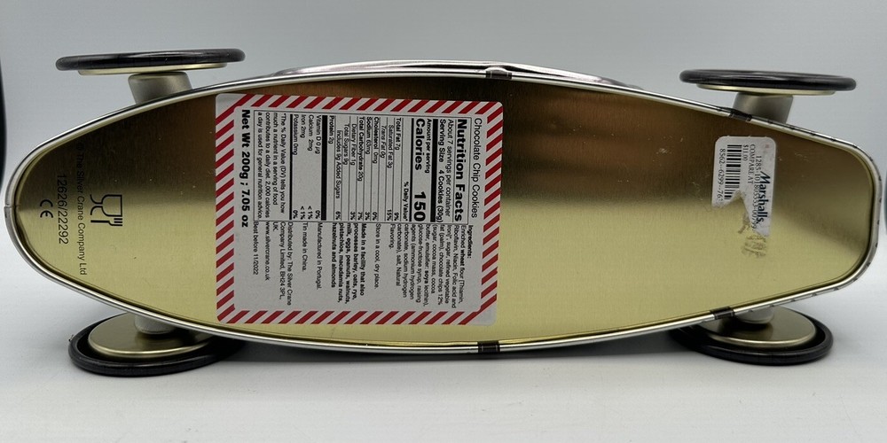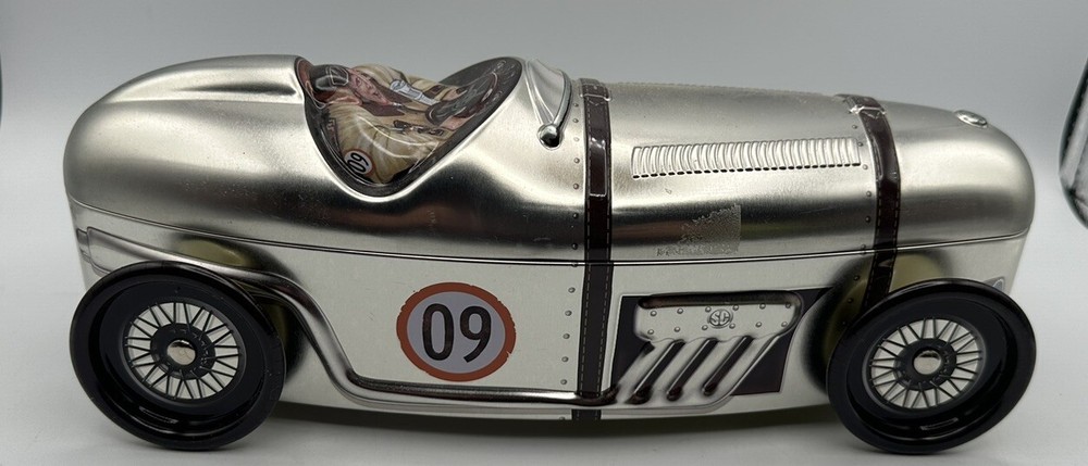 This Silver Crane Company tin container is a must-have for any collector or fan of Kurtis Kraft 500S race cars. The empty chocolate cookies tin measures 11 inches in length and 4 inches in height and width, making it a perfect addition to any display shelf. The silver color and branding make it a great piece of advertising merchandise, while the food storage aspect adds a touch of practicality to the item. Made in Portugal, this tin container is a unique and rare find that any race car enthusiast would love to own.