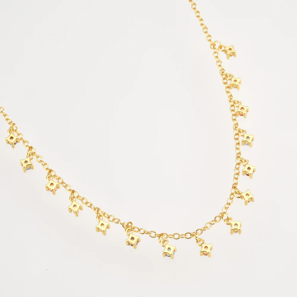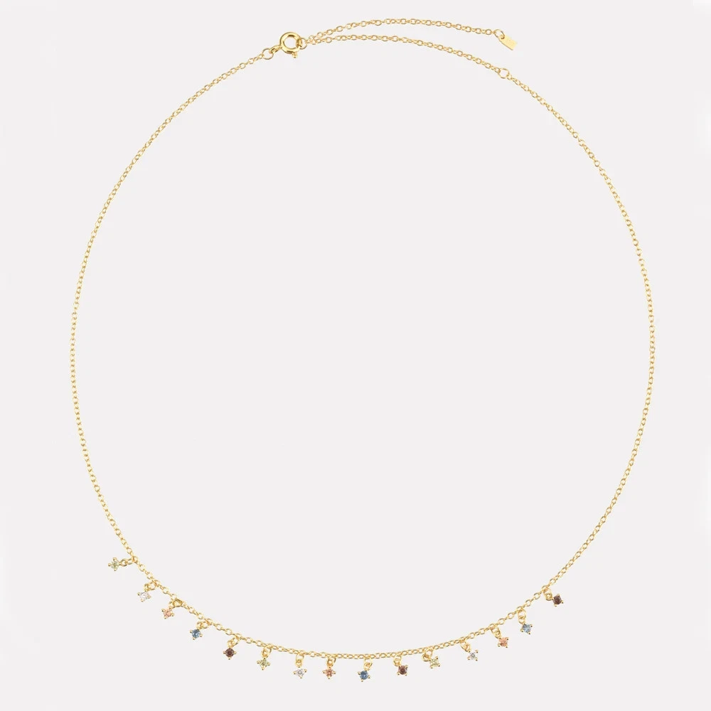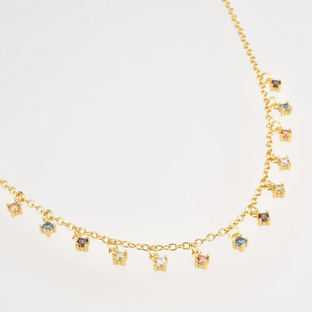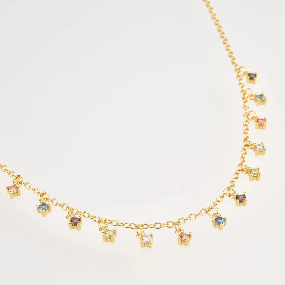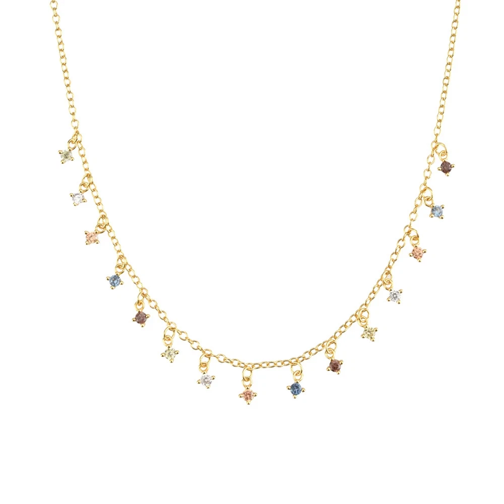 $ 7.48Silver Gold Rainbow Zircon Charm Choker Chain Necklace Rock Beads Pendant