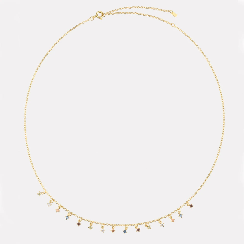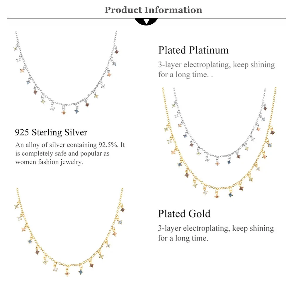 Silver Gold Rainbow Zircon 2mm Tennis Choker Necklace for Women Birthday Gift