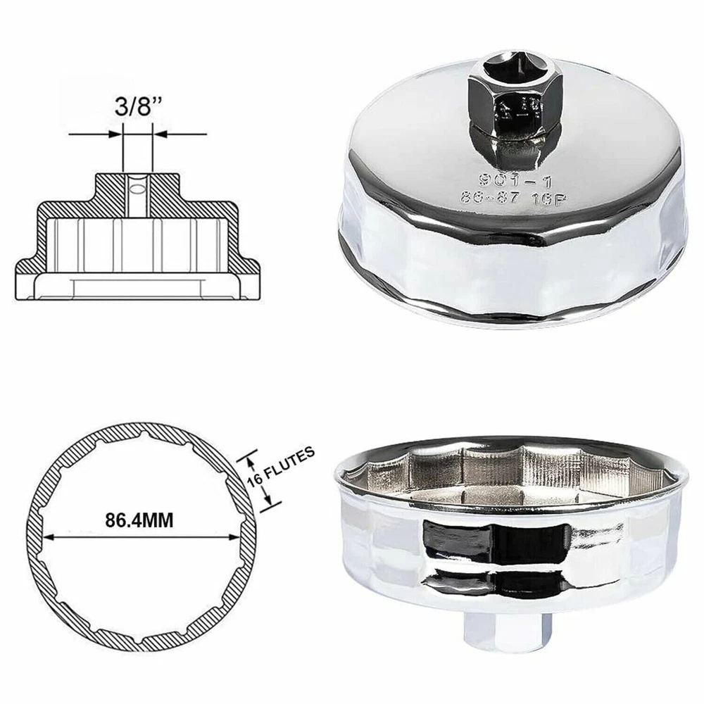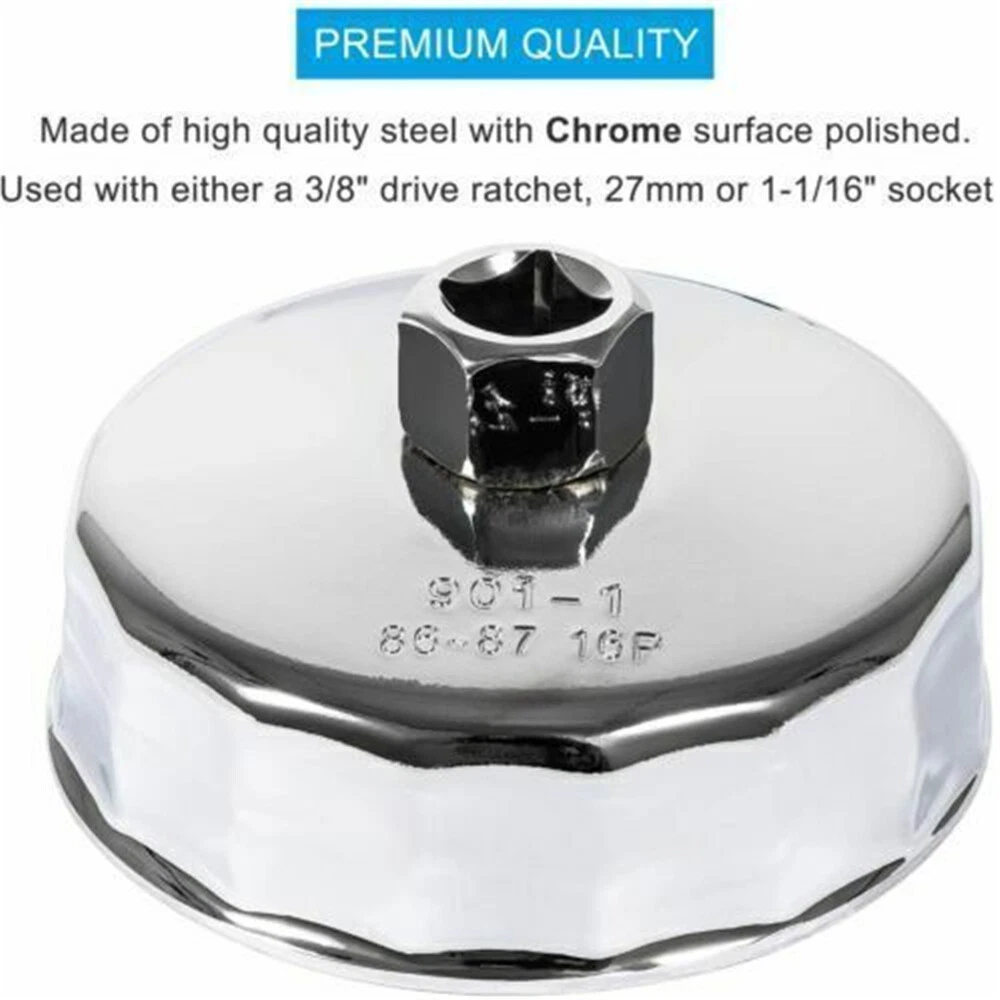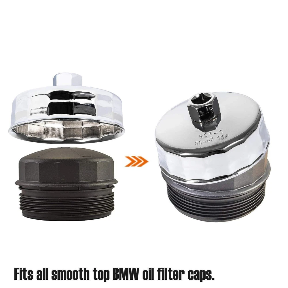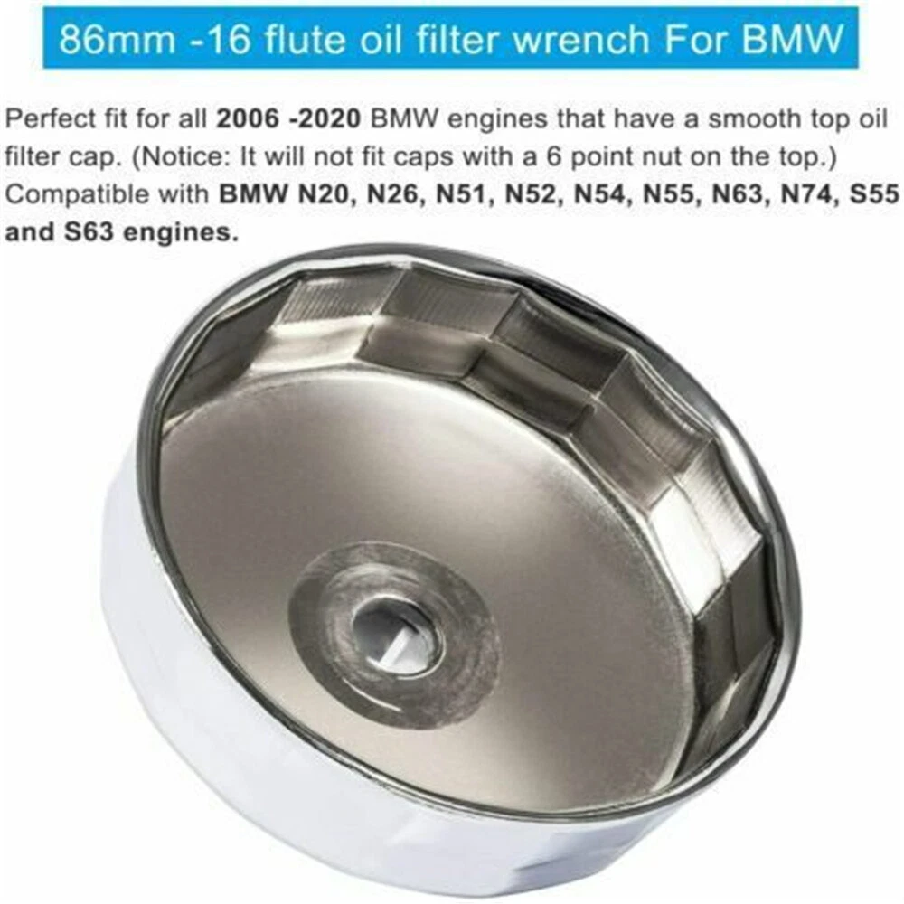Fitment: Fits for Volvo: C70, S40, S60, S70, S80, V40, V70, XC70, and XC90. Does not fit the Volvo 3.2L 6 Cylinder Engines Volvo C70 1998 – 2004 2.3 L Volvo C70 1998 – 2005 2.4 L Volvo S40 1999 – 2004 1.9 L Volvo S60 2001 – 2004 2.0 L Volvo S60 2001 – 2005 2.3 L Volvo S60 2001 – 2009 2.4 L Volvo S60 2003 – 2009 2.5 L Volvo S70 1998 – 2000 2.3 L Volvo S70 1998 – 2000 2.4 L Volvo S80 1999 – 2003 2.8 L Volvo S80 1999 – 2006 2.9 L Volvo S80 2004 – 2006 2.5 L Volvo S80 2007 – 2010 4.4 L Volvo V40 1999 – 2004 1.9 L Volvo V70 2001 – 2004 2.3 L Volvo V70 2001 – 2007 2.4 L Volvo V70 2003 – 2007 2.5 L Volvo XC70 2003 – 2007 2.5 L Volvo XC90 2003 – 2005 2.9 L Volvo XC90 2003 – 2014 2.5 L Volvo XC90 2005 – 2011 4.4 L Fits BMW (check your car model and year) Manufacturer Model Year Engine BMW 1 Series M 2011 N54B30A BMW 125i 2009 – 2010 N54B30A BMW 128i 2008 – 2013 N51B30A BMW 128i 2008 – 2013 N52B30A BMW 130i 2006 – 2010 N52KB30 BMW 135i 2008 – 2010 N54B30A BMW 135i 2011 – 2013 N55B30A BMW 135is 2013 N55B30A BMW 220i 2014 – 2020 N20B20U0 BMW 228i 2014 – 2020 N20B20A BMW 228i xDrive 2015 – 2020 N20B20A BMW 235i 2014 N55B30O0 BMW 320i 2012 – 2015 N20B20A BMW 320i xDrive 2013 – 2015 N20B20A BMW 323i 2006 N52 BMW 323i 2007 – 2011 N52N BMW 325i 2006 N52 BMW 325i 2007 – 2013 N52KB25 BMW 325i 2011 – 2013 N54B30 BMW 325xi 2006 N52 BMW 328i 2007 – 2013 N51B30A BMW 328i 2007 – 2013 N52 BMW 328i 2009 – 2010 N52B30A BMW 328i 2012 – 2015 N20B20A BMW 328i GT xDrive 2014 – 2016 N20B20A BMW 328i xDrive 2009 – 2010 N52B30A BMW 328i xDrive 2009 – 2013 N51B30A BMW 328i xDrive 2009 – 2013 N52 BMW 328i xDrive 2013 – 2015 N20B20A BMW 328xi 2007 – 2008 N51B30A BMW 328xi 2007 – 2008 N52 BMW 330i 2006 N52 BMW 330i 2007 N54B30 BMW 330xi 2006 N52 BMW 335i 2007 – 2010 N54B30A BMW 335i 2007 – 2012 N54B30 BMW 335i 2011 – 2015 N55B30A BMW 335i GT xDrive 2014 – 2020 N55B30A BMW 335i xDrive 2009 – 2010 N54B30A BMW 335i xDrive 2011 – 2015 N55B30A BMW 335is 2011 – 2013 N54B30A BMW 335xi 2007 – 2008 N54B30A BMW 420i 2016 N20B20U0 BMW 420i Gran Coupe 2016 N20B20U0 BMW 428i 2014 – 2020 N20B20A BMW 428i 2014 – 2020 N20B20O0 BMW 428i Gran Coupe 2015 – 2020 N20B20A BMW 428i Gran Coupe 2015 – 2020 N20B20O0 BMW 428i xDrive 2014 – 2020 N20B20A BMW 428i xDrive Gran Coupe 2015 – 2020 N20B20A BMW 435i 2014 – 2020 N55B30A BMW 435i 2014 – 2020 N55B30M0 BMW 435i Gran Coupe 2015 – 2020 N55B30A BMW 435i xDrive 2014 – 2020 N55B30A BMW 435i xDrive Gran Coupe 2015 – 2020 N55B30A BMW 525i 2010 N52KB30 BMW 525i 2006 – 2007 N52 BMW 525i 2006 – 2010 N52KB25 BMW 525xi 2006 – 2007 N52 BMW 528i 2011 N52KB25 BMW 528i 2011 N52KB30 BMW 528i 2008 – 2011 N52B30A BMW 528i 2012 – 2016 N20B20A BMW 528i xDrive 2009 – 2010 N52B30A BMW 528i xDrive 2012 – 2016 N20B20A BMW 528xi 2008 N52B30A BMW 530i 2006 – 2007 N52 BMW 530i 2006 – 2013 N52KB30 BMW 530i 2012 – 2013 N52KB25 BMW 530xi 2006 – 2007 N52 BMW 535i 2008 – 2010 N54B30A BMW 535i 2011 – 2020 N55B30A BMW 535i GT 2010 – 2020 N55B30A BMW 535i GT xDrive 2011 – 2016 N55B30A BMW 535i xDrive 2009 – 2010 N54B30A BMW 535i xDrive 2011 – 2020 N55B30A BMW 535xi 2008 N54B30A BMW 640i 2012 – 2020 N55B30A BMW 640i Gran Coupe 2020 N55B30O0 BMW 640i Gran Coupe 2013 – 2016 N55B30A BMW 640i xDrive 2014 – 2020 N55B30A BMW 640i xDrive Gran Coupe 2014 – 2020 N55B30A BMW 740i 2011 – 2012 N54B30A BMW 740i 2013 – 2015 N55B30A BMW 740Li 2011 – 2012 N54B30A BMW 740Li 2013 – 2015 N55B30A BMW 740Li xDrive 2013 – 2015 N55B30A BMW ActiveHybrid 3 2013 – 2015 N55B30A BMW ActiveHybrid 3 2014 – 2015 N55B30M0 BMW ActiveHybrid 5 2012 – 2020 N55B30A BMW ActiveHybrid 7 2013 – 2015 N55B30A BMW M135i 2014 – 2020 N55B30O0 BMW M235i 2014 – 2020 N55B30A BMW M235i 2015 – 2020 N55B30O0 BMW M235i xDrive 2015 – 2020 N55B30A BMW X1 2012 – 2020 N20B20A BMW X1 2013 – 2015 N55B30A BMW X3 2007 – 2010 N52 BMW X3 2007 – 2011 N52KB25 BMW X3 2007 – 2011 N52KB30 BMW X3 2009 – 2012 N52B30A BMW X3 2011 – 2020 N55B30A BMW X3 2013 – 2020 N20B20A BMW X4 2015 – 2020 N20B20A BMW X4 2015 – 2020 N55B30A BMW X5 2007 – 2010 N52B30A BMW X5 2007 – 2011 N52KB30 BMW X5 2011 – 2020 N55B30A BMW X6 2008 – 2010 N54B30A BMW X6 2011 – 2020 N55B30A BMW Z4 2006 – 2008 N52 BMW Z4 2007 – 2011 N52KB25 BMW Z4 2007 – 2020 N52KB30 BMW Z4 2009 – 2011 N52B30A BMW Z4 2009 – 2020 N54B30A BMW Z4 2012 – 2020 N20B20A BMW Z4 2015 – 2020 N52KB25 Description: Size: 86.6 MM Flutes: 16 Hex Drive Socket Size: 27mm / 1-1/16" Material: high quality steel Features: This oil filter wrench is specifically designed and tested to fit BMW and Volvo vehicles which have a cartridge style oil filter with an 86mm 16 flute oil filter cap. 86mm oil filter caps have a smooth top such as the one shown in the photos. If your oil filter cap has a bolt through the center or a large nut on top this wrench is NOT compatible with your vehicle. This wrench isn't for use with traditional disposable spin-off canister style oil filters. Package includes: 1pc 86mm Oil Filter Wrench Cap Tool