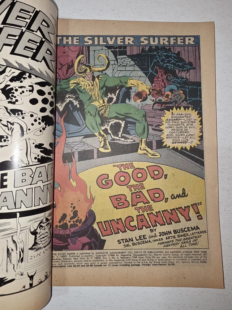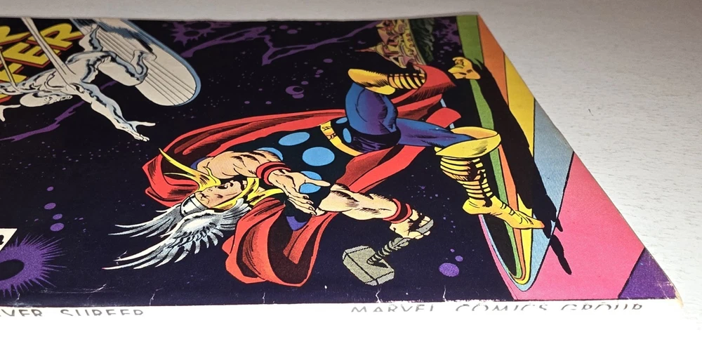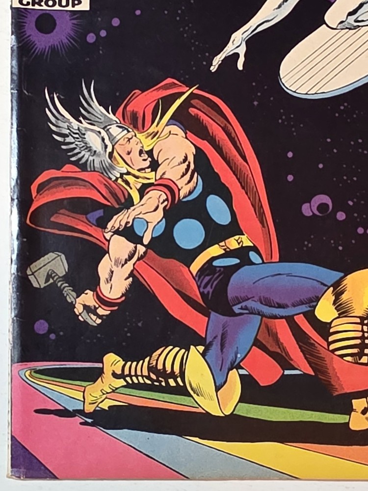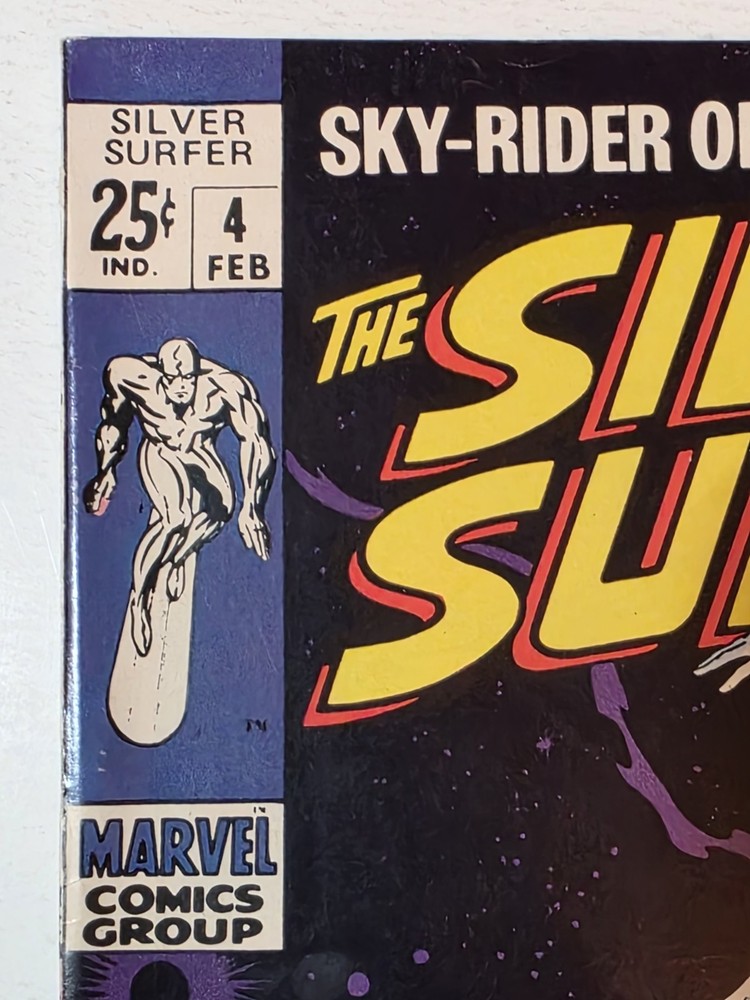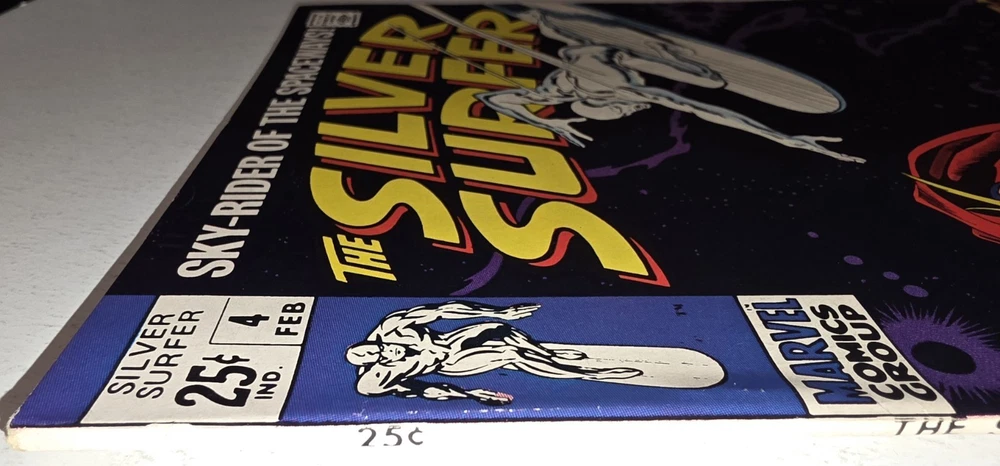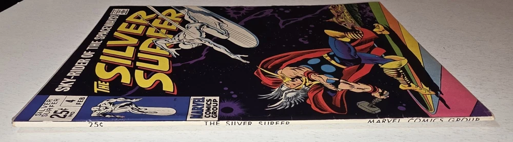 The Silver Surfer Silver Age #4 Marvel 1969 Iconic Thor Issue by Sal Buscema is a vintage comic book featuring the character Silver Surfer from the Marvel Universe. Published by Marvel Comics in 1969 during the Silver Age era, this single issue comic is a key feature of the Avengers superhero team. With a grade range of VF/NM this collectible item is a valuable piece of US Comics tradition and a must-have for fans of classic superhero genres. - Gorgeous copy, cover glossy and vibrant Interior is stellar and staples intact. Squarebound spine is firm. A few spine ticks and top left corner has some non visible imprinted numbers but otherwise in tremendous condition, see pictures - Bagged and boarded- Shipped with Gemini packing to insure no damage during shipping - Usps Priority insured Check out our 1000s of comics in our store We combine shipping