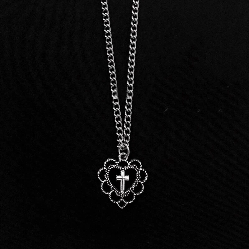 Silver Tone Chain Filigree Heart Love and for Cross Necklace Jewelry