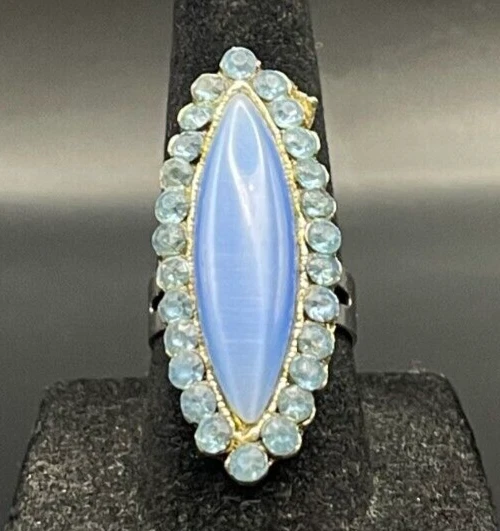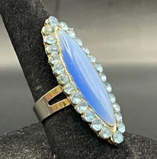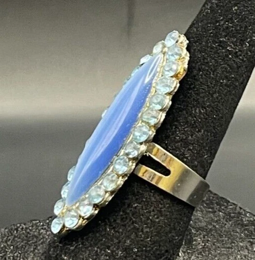 Silver Tone Lavender Rhinestone Cocktail Ring - Size 6.5