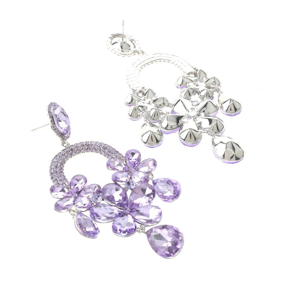 Silver Tone Metal Rhinestone Large Crystal Chandelier Post Earrings / Approximate Size: 4"L x 2" W / Lead & nickel compliant / Color: Silver & Lavender Condition: Brand New SKU: ESE9967-LAV Color: Lavender Design: All orders will ship from USA via UPS or USPS. We expect all local orders will receive the items within 7 business days or less depend the location. Worry free international shipment delay or custom duty fee.