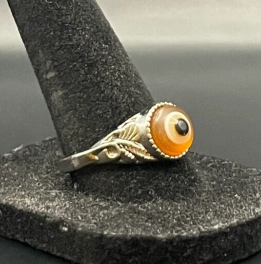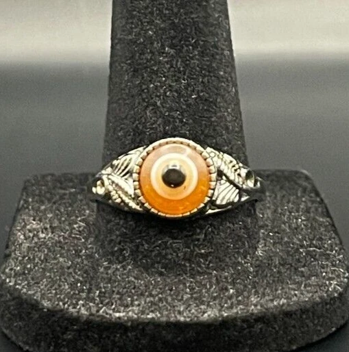Silver Tone Orange Eye Ring - Size 10