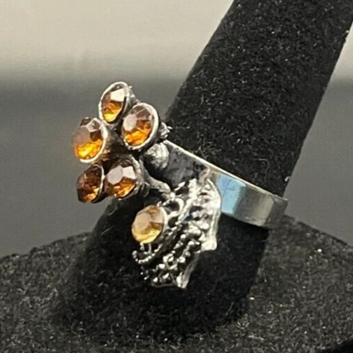 Occasion: Anniversary, Birthday, Christmas, Father's Day, Graduation Handmade: No UPC: Does not apply Style: Band, Cocktail Base Metal: Stainless Steel Era: Undated Gemstone Clarity Grade: Unknown Metal Purity: Unknown Cut Grade: Excellent Band Width: Unknown Customized: No Main Stone Creation: Unknown Material: Rhinestone, Unknown Country/Region of Manufacture: China Main Stone Shape: Brilliant Cut Metal: Stainless Steel Features: Engraved, Nickel-Free Secondary Stone: No Stone Personalize: No Number of Gemstones: Unknown Wholesale: No Modified Item: No Sizable: No Main Stone Color: Brown Setting Style: Solitaire Ring Size: 6.5 Main Stone Width: Unknown Theme: Biker Country of Origin: Unknown Type: Ring Shape: Asymmetrical Antique: Yes Main Stone Length: Unknown Color: Silver gtin13: Does not apply Brand: Unbranded Main Stone Depth: Unknown Signed: No Seller Warranty: No Vintage: Yes Main Stone: Crystal