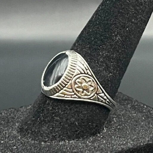 Modified Item: No Setting Style: Solitaire Color: Silver Secondary Stone: No Stone UPC: Does not apply Theme: Biker Cut Grade: Excellent Ring Size: 7.5 Country/Region of Manufacture: China Main Stone Color: Black Handmade: No Style: Band, Cocktail Material: Rhinestone, Unknown Vintage: Yes Number of Gemstones: Unknown Era: Undated Main Stone Shape: Brilliant Cut Features: Engraved, Nickel-Free Main Stone Length: Unknown Main Stone Depth: Unknown Shape: Asymmetrical Type: Ring Customized: No Wholesale: No Band Width: Unknown Country of Origin: Unknown gtin13: Does not apply Signed: No Seller Warranty: No Metal: Stainless Steel Main Stone Creation: Unknown Gemstone Clarity Grade: Unknown Occasion: Anniversary, Birthday, Christmas, Father's Day, Graduation Brand: Unbranded Main Stone: Crystal Metal Purity: Unknown Sizable: No Antique: Yes Base Metal: Stainless Steel Main Stone Width: Unknown Personalize: No