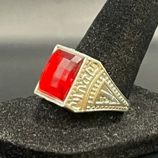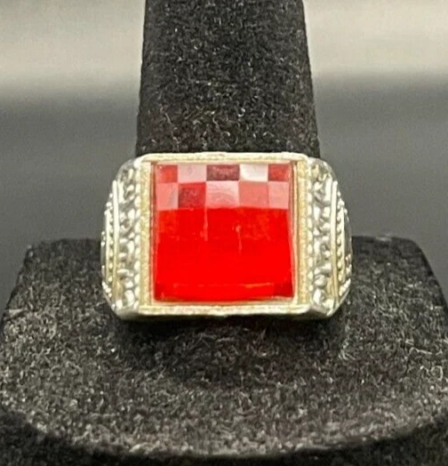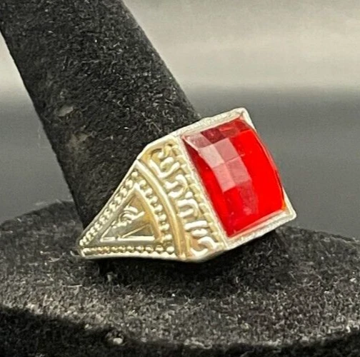 Country of Origin: Unknown Color: Silver Brand: Unbranded Main Stone Creation: Unknown Modified Item: No Country/Region of Manufacture: China Handmade: No Signed: No Antique: Yes Features: Engraved, Nickel-Free Shape: Asymmetrical Material: Rhinestone, Unknown Cut Grade: Excellent Vintage: Yes Main Stone: Crystal Main Stone Width: Unknown Band Width: Unknown Wholesale: No Customized: No Seller Warranty: No Main Stone Depth: Unknown Metal Purity: Unknown Metal: Stainless Steel Number of Gemstones: Unknown Sizable: No Style: Band, Cocktail Occasion: Anniversary, Birthday, Christmas, Father's Day, Graduation Base Metal: Stainless Steel Era: Undated Secondary Stone: No Stone Ring Size: 10 gtin13: Does not apply Main Stone Color: Red UPC: Does not apply Personalize: No Type: Ring Theme: Biker Gemstone Clarity Grade: Unknown Setting Style: Solitaire Main Stone Shape: Brilliant Cut Main Stone Length: Unknown