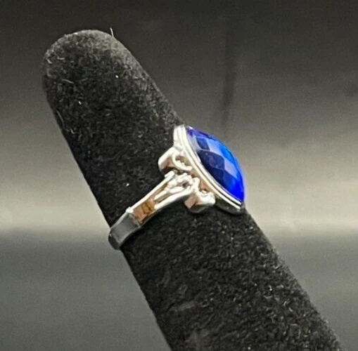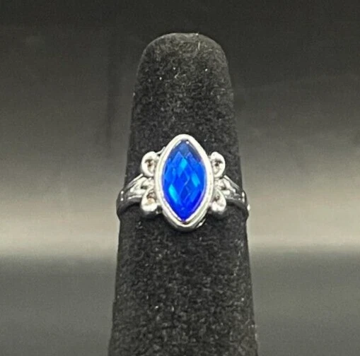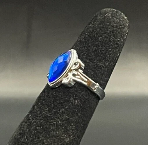 Silver Tone Sapphire Blue Rhinestone Ring - Size 2.5