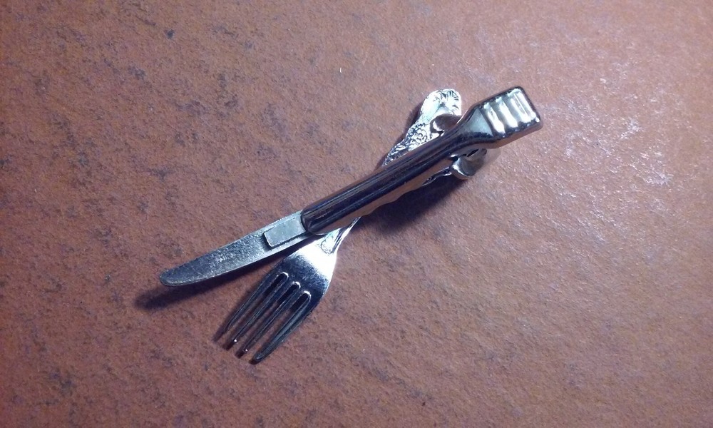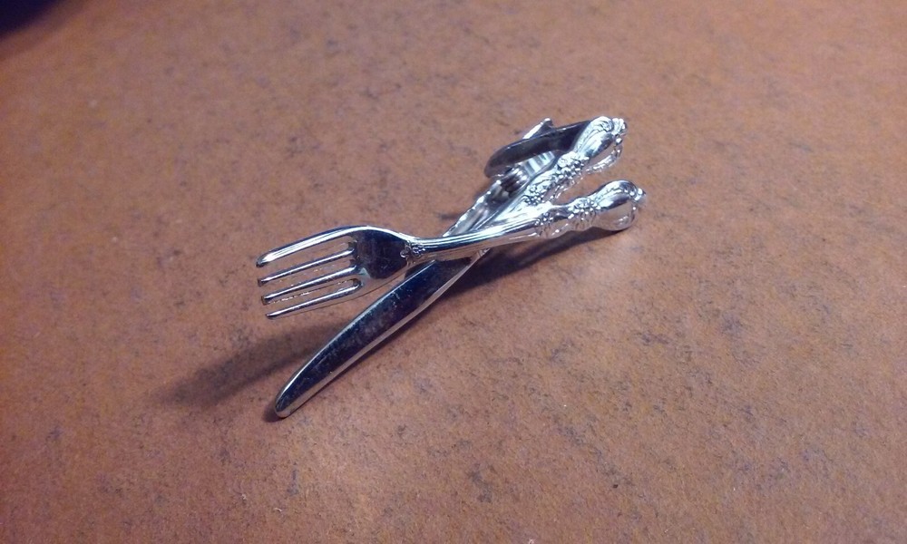 Silver-Tone Fork & Knife Tie Clip for Restaurant Professionals 2 Inch