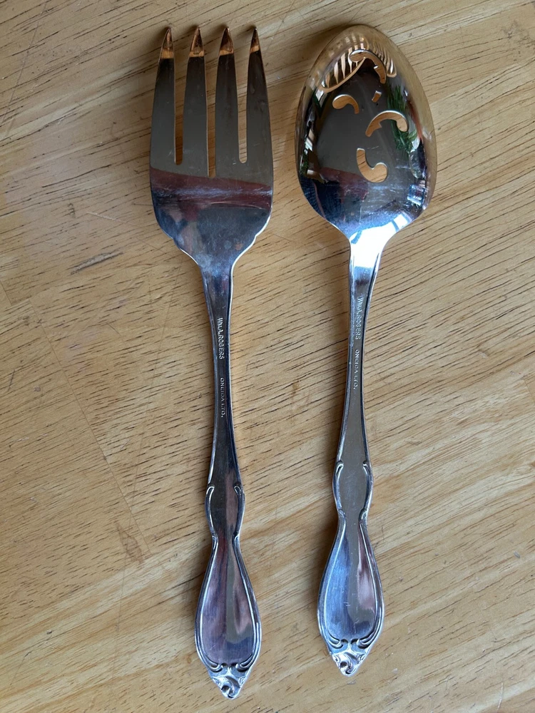 Silverplate Wm A Rogers Oneida OLD SOUTH II MEAT FORK & SLOTTED SERVING SPOON