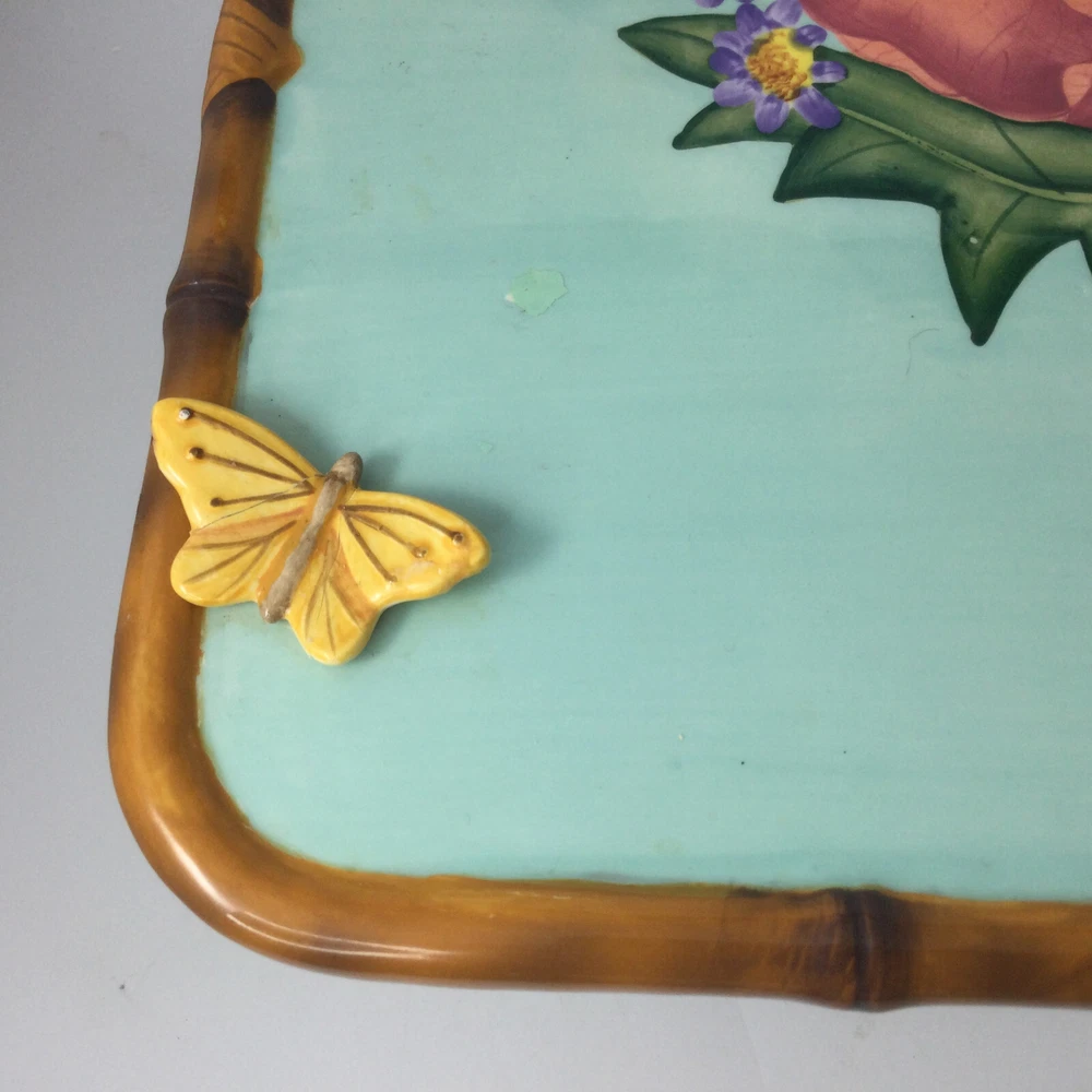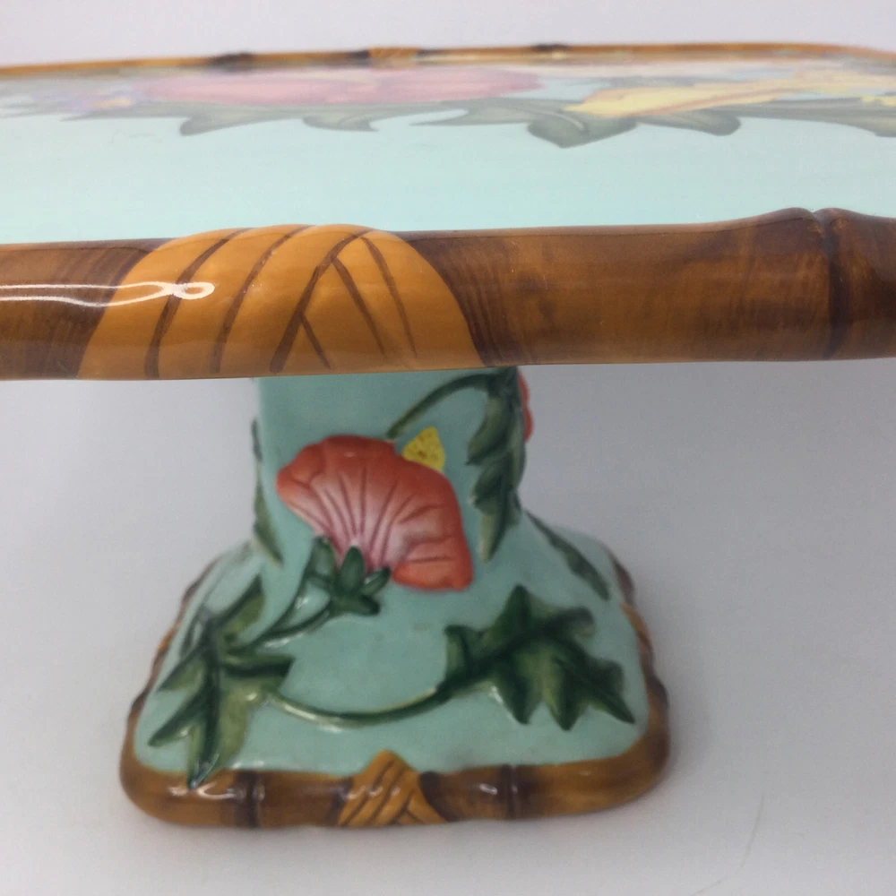 Silverstri Decoupage Square Heavy Ceramic Cake Stand Footed Flowers Butterfly