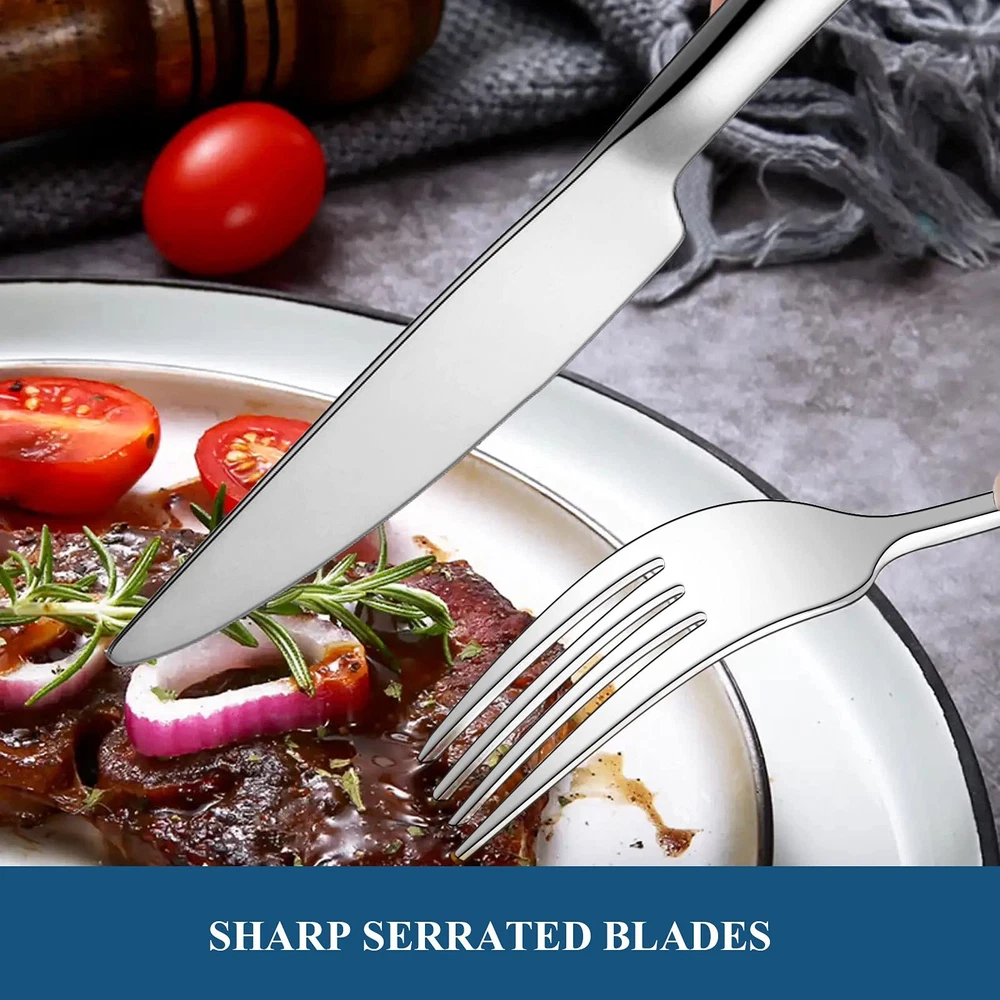 40-piece Stainless Steel Flatware Set is made of high quality 18/0 stainless steel, rust resistance and healthy for daily use. Simple and elegant design makes it suitable for any formal or informal occasions, such as home, hotels, restaurants, gathering, parties, picnics, camping, etc. Nice with a good length and proper weight, these tableware utensils provides a comfortable grip for both adults and big children. Why Choose Stainless Steel Silverware Set? πΈ [HEALTHY & DURABLE] Made of high quality 18/0 stainless steel, rust resistance, healthy, solid and durable for daily use. πΈ [ELEGANT DESIGN] Mirror polished surface, smooth edge no rough spots, proper gauge thickness and weight to hold comfortably. πΈ [MULTI FUNCTIONAL] Perfect for any formal or informal occasions, such as home, hotels, restaurants, gathering, parties, picnics, camping, etc. πΈ [EASY CLEAN] This flatware set is dishwasher safe, easy clean by hands. Your proper care can make this looks as good as new. PACKAGE CONTENTS π 9.2-inch Dinner Knife x 8 π 7.4-inch Dinner Fork x 8 π 7.4-inch Dinner Spoon x 8 π 6.5-inch Salad Fork x 8 π 6.5-inch Teaspoon x 8 USING INSTRUCTION 1. Please wash the flatware set with warm soapy water before first using to wash off any processing residue left from manufacturing. 2. Please clean and dry the silverware set after using for your daily use, and store in dry place for its durability. 3. Please do not use any harsh detergents, steel wool, scouring pads to clean the flatware set. [GUARANTEE]: 100% satisfaction guarantee for risk-free shopping - If you have any queries about our products, just contact us any time you feel comfortable. QUALITY SILVERWARE: 40-piece Stainless Steel Flatware Set is made of high quality 18/0 stainless steel, rust resistance, healthy, sturdy and durable for years to come PRODUCT INCLUDES: This flatware set services for 8 people which includes 8 dinner knives, 8 dinner forks, 8 dinner spoons, 8 salad forks and 4 tea spoons MODERN DESIGN: Mirror polished surface, smooth edge no rough spots, proper gauge thickness and weight to hold comfortably and provide you a fine dining experience FUNCTIONAL: Perfect for any formal or informal occasions, such as home, hotels, restaurants, gathering, parties, wedding, picnics, camping, etc. Easy clean and dishwasher safe USE AND MAINTENANCE: Itβs recommended to wash by hand, wipe dry before storing. Wire brush, hard sponge, cleaning cloth or any other hard material are not recommended, it will damage the silverware