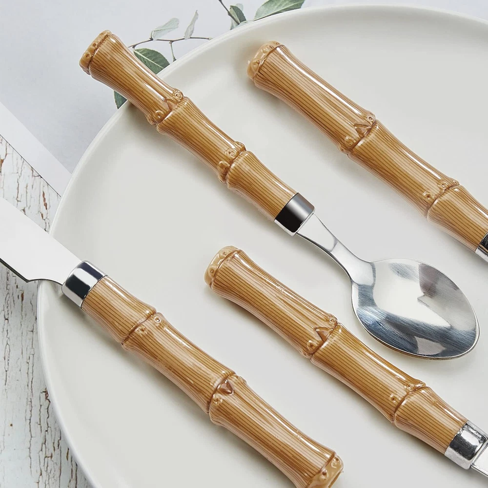 A set of plastic handle silverware set you need in basic everyday: *Made of 18/0 stainless steel that provide long-lasting performance and holds up to frequent washing. *The unique color upgrade the class of your table and suitable for different occasion. *Perfect for daily use, gathering, party, camping, barbecue, restaurant, hotel, wedding or more. *Also great gift for friends and relatives.What Included: 4 x Dinner Forks(7.46'') 4 x Salad Forks(6.2'') 4 x Tablespoons(7.46'') 4 x Teaspoons(6'') 4 x Knives(8.1'') Using Instruction:1. Please clean it with soap water for your first using and wash off any residue left from the manufacturing.2. Please clean and dry the flatware set well after use, and in a dry place for durability.3. Please do not wash it with wire brush or strong to avoid scratch.4. Please enjoy these luxury silverware set with your healthy daily meal.Guaranteed Satisfaction:Hoften committed to provide 12 months and friendly to our clients.Hoften is a flatware set expert, who provides you durable product and reliable service. Silverware - 4 Dinner Forks(7.46''), 4 Tablespoons(7.46''), 4 Knives(8.1''), 4 Dessert Forks(6.2'') and 4 Teaspoons(6''). This utensil is great for family dinners and parties Unique Design Utensils - Unique plastic handle will be your favour if you love natural and environment. Professional 18/0 stainless steel ensuring rust and corrosion resistant. Ideal for causal meals as well as formal dinners, adding a sense of class to make your meal more special Flatware Perfect For Gift Giving - As a wonderful gift for weddings birthdays house warming engagements Mother's Day Father's Day Valentine's Day and more. Flatware separately wrapped in plastic sleeves to prevent damage from scratching, and packaged in a gift box Great Hand Feel - Featuring classic curves, heavy-weight heft and exceptional balance. The handles are smooth, tactile and comfortable, making each utensil a pleasure to hold. Sturdy & Long Lasting Stainless Steel Silverware with Plastic Handle - These silverware are made of premium stainless steel which ensures your , sturdy enough for basic daily use, rust resistant and durable for years to come.