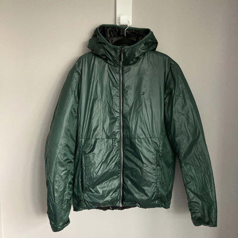 Very good condition. Mens large Pit to pit 23'' Length 27'' Style: Fornelli Reversible Nylon with polyester fill Hooded Light / packable