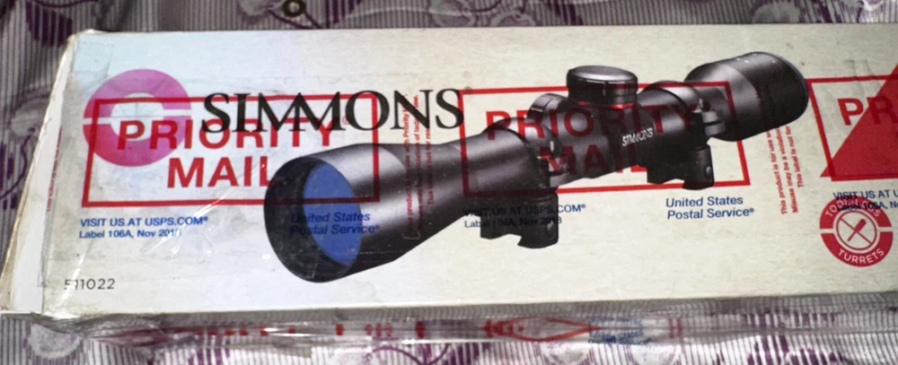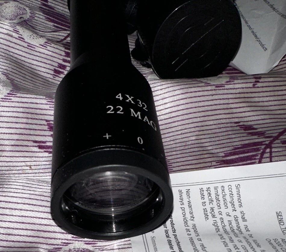 - Simmons 511022 .22 MAG 4x32mm Rifle Scope Truplex Reticle w/ Weaver Rings - NEW - - NEVER USED I TRIED MOUNTING TO ONE OF MY PELLET TOYS BUT SID NOT WORK. TO BE HONEST WAS NOT EVEN MOUNTED AT ALL I NOTICED ITBWAS OT GOING TO FIT AND PUT IT BAK IN IN ORIGINAL BOX AND PACKAGING W/ WARRANTY CARDS ***NOTE: ONLY THING IS THAT THE INSIDE OF BOX IS DIERY AND I DID CLEAN, SCOOE HAS ALWAYS BEEN IN BAG OR WRAPPED IN BUBBLE WRAP AND IS 100% PERFECT CONDITION JUST LIKE YOU OPENED BOX AFTER YOU PURCHASED IT FROM STORE LOOK AT ALL PICS **** Please reference pictures for description - From smoke free / pet free home - Product Information: - The Simmons .22 MAG 4x 32mm Riflescope (Matte) is extremely popular with rimfire enthusiasts. Featuring a TrueZero adjustment system and the Quick Target Acquisition (QTA) eyepiece - this fine optic is an excellent value and a proven performer. - Product Identifiers: Brand:Simmons MPN: 561022 UPC: 0045618110222 Model : . 22 MAG 4x 32mm -Product Key Features: - Reticle Type - Truplex - Additional Product Features Type: Rifle Scope Please look at all the pictures and use the zoom feature to determine condition/style/size for yourself. This came from a clean smoke/pet free household. Thanks for looking please checkout my other items I have listed & save on shipping costs. Any custom duties or taxes are the buyers cost, so please check your country import fees/taxes.