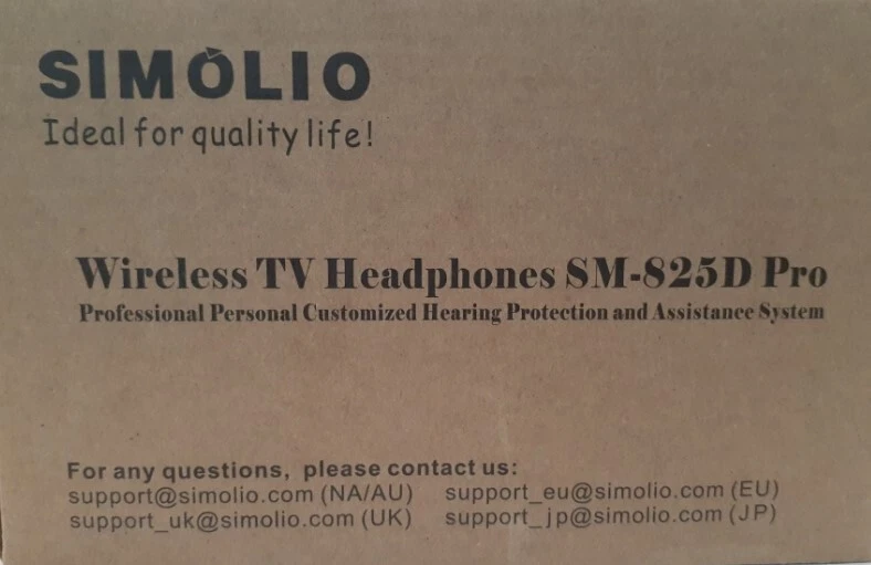 Simolio ASM-825D PRO Wireless TV Headphones with Clear Dialog Mode. Enhanced Voice Control for Seniors Hard of Hearing. Enjoy your favorite programs in healthy & clear sound. NEW in Box. Voice Enhancement No Audio Lag Automatic Signal Control Tone Optional (Treble/Normal/Bass) Balance Adjustment. One Button Push Long Range Up to 100ft.