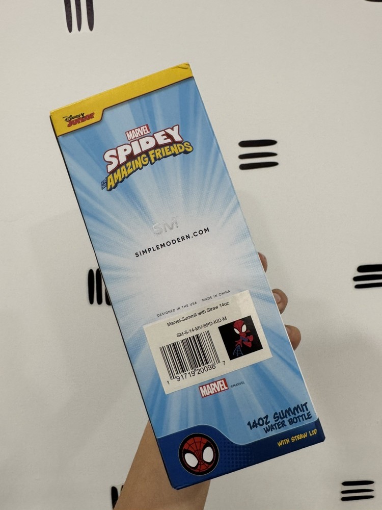 The Simple Modern Kids Summit Water Bottle with Straw Lid in Marvel Spider Man design is a 14oz stainless steel thermos perfect for young fans. Made in the United States, this water bottle features a durable construction and a convenient straw lid for easy sipping. The vibrant Marvel-Spidey Kid color scheme adds a fun touch to the otherwise practical design, making it an ideal choice for active kids on the go. With a compact size and light weight, this water bottle is both functional and stylish for everyday use. Cold for 24h