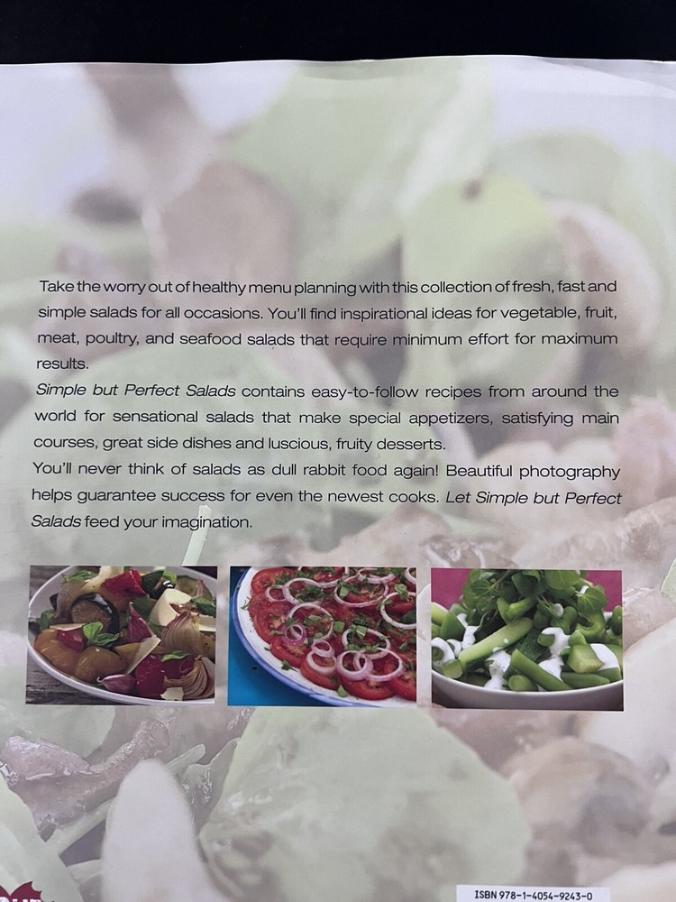 This cookbook titled "Simple but Perfect Salads" by Beverly Le Blanc and Love Food Editors is a must-have for anyone who loves cooking. Published in 2007 by Parragon, Incorporated, the book has 224 pages filled with delicious salad recipes. The book is a first edition, hardcover format with a dust jacket and illustrations. The cookbook is suitable for young adults and adults who are interested in cooking, especially those who prefer low-carb and vegetarian dishes. The book features various salad recipes, including those for different occasions and ingredients like vegetables. The book is in English and has a size of 9 inches in length, 11 inches in height, and 0.5 inches in width.