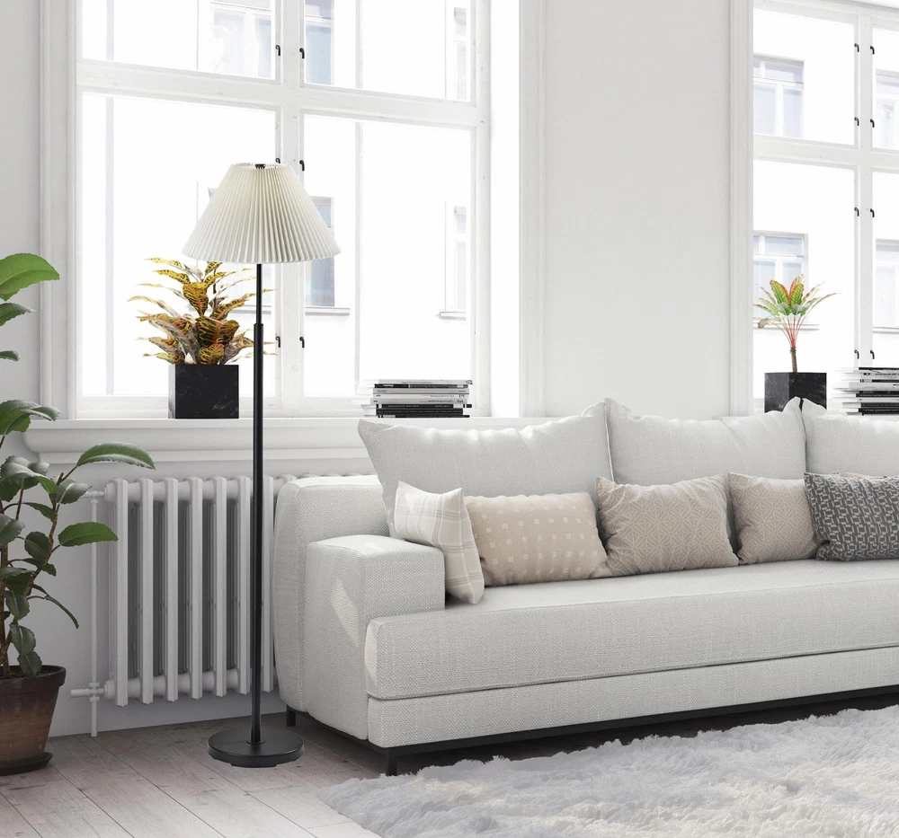 Introducing the SL9500-01 Jeremy Floor Lamp, a sleek and sophisticated lighting solution that enhances any room's ambiance. With its timeless black finish, this lamp effortlessly complements a variety of interior styles. The Jeremy Floor Lamp stands tall at 60.75 inches, making it an ideal choice for both task lighting and accentuating your decor. Its tapered white pleated fabric shade exudes elegance and diffuses a soft, inviting glow. The 3-Way Rotary Socket Switch offers versatility, allowing you to adjust the lighting to suit your needs. Elevate your home with the SL9500-01 Jeremy Floor Lamp, a fusion of form and function. Sleek Modern Design: The SL9500-01 Jeremy Floor Lamp boasts a black finish and a tapered white pleated fabric shade, creating a sleek and modern aesthetic that complements various interior styles. Perfect Height: Standing at 60.75 inches, this floor lamp is a versatile addition to your living room, bedroom, or office, offering both ambient and task lighting. Elegant Illumination: The tapered white pleated fabric shade provides an elegant touch while diffusing warm, inviting light that enhances your room's atmosphere. Adjustable Brightness: With the 3-Way Rotary Socket Switch, you can easily adjust the lamp's brightness to suit different activities and moods, from soft ambient lighting to focused task illumination. Functional Decor: The SL9500-01 Jeremy Floor Lamp seamlessly combines functionality and aesthetics, making it a standout piece that elevates your space while fulfilling your lighting needs.