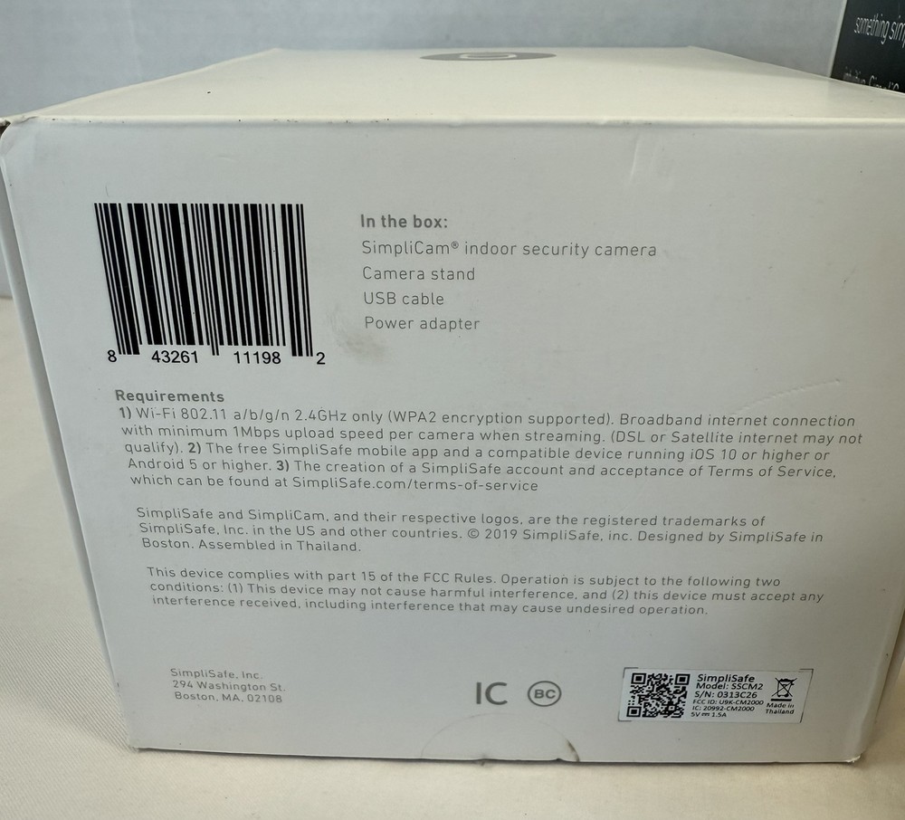 SimpliSafe Indoor Security Camera 1080p HD with Stand SSCM2 Includes Original Box