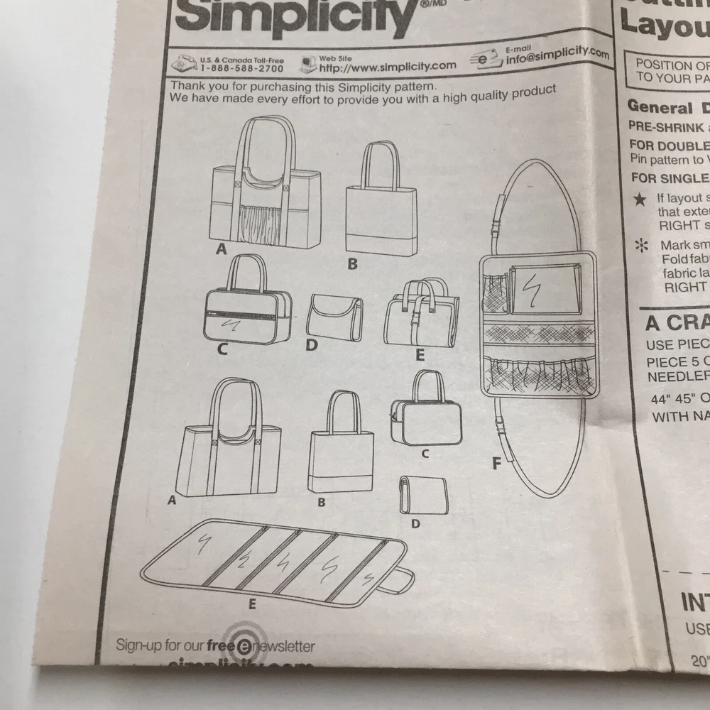 Simplicity 1128 Totes Organizer Travel Bag Car Organizer Pattern Cut All pieces included U ncut