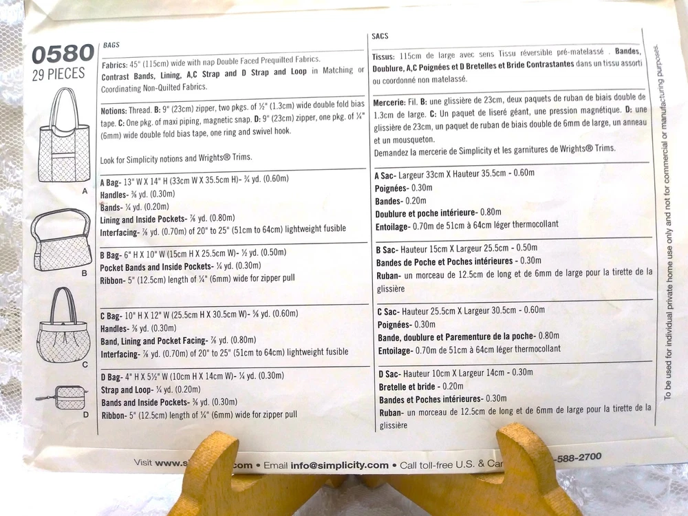 Simplicity 0580 29 pieces 5 bag styles BOHO New Uncut This Simplicity sewing pattern (#0580) is new and uncut. It includes 29 pieces to create five different bag styles, perfect for purses and totes. The brand is Simplicity, a trusted name in sewing patterns. The design is BOHO and fashionable, with a focus on functionality and style. The pattern is from the 2010s. It is a great addition to any sewing collection and perfect for those who love to create their own accessories.
