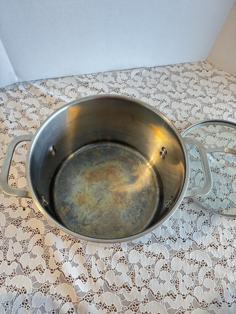The Simply Calphalon Stainless Steel 6 QT./7.5L 806 Dutch Oven Stock Pot is a versatile and durable addition to any kitchen. Made of high-quality stainless steel, this pot is suitable for use on both electric and gas stoves. Its sleek silver color and compact 6-inch height without the lid, make it a stylish and functional piece for your cooking needs. Weighing 6 lbs, this pot is sturdy and reliable for everyday use.