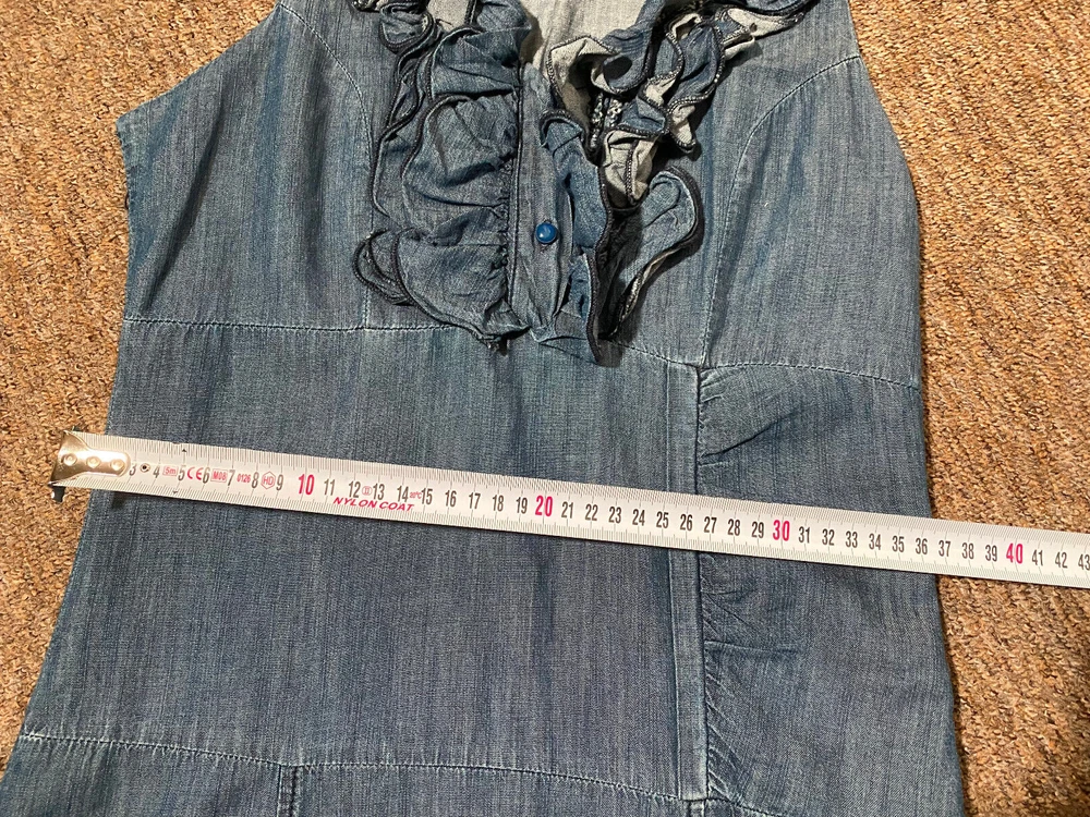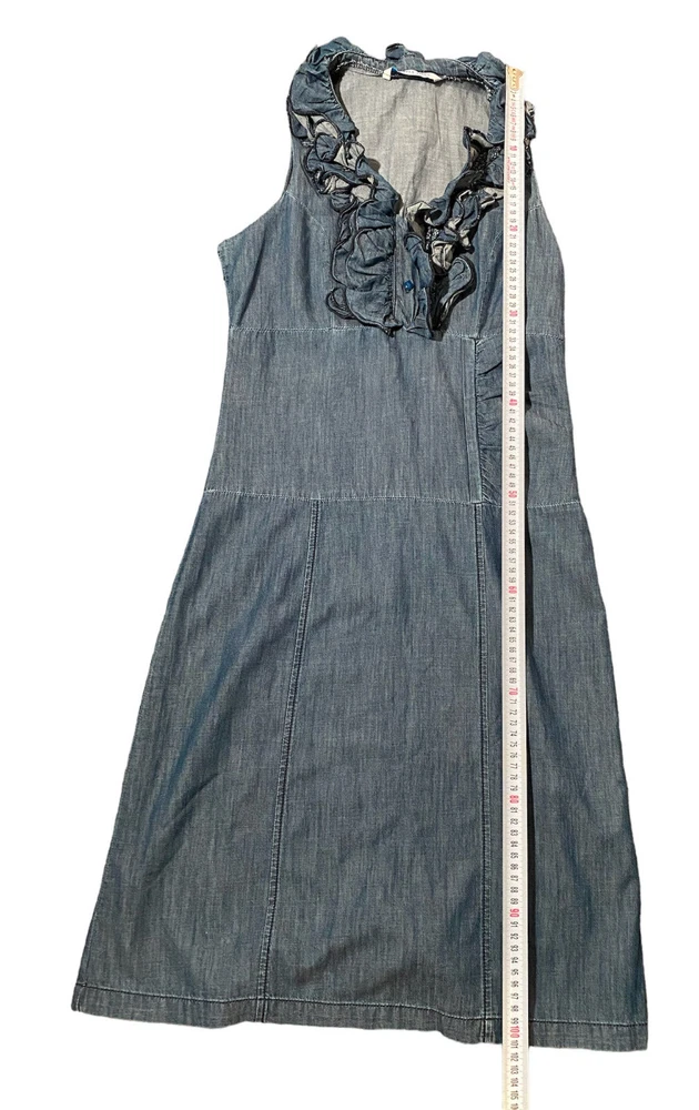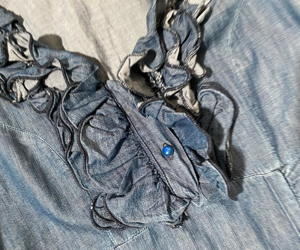 Simply Chic Dress Women Small Denim Summer Short Ruffle Sleevless Blue
