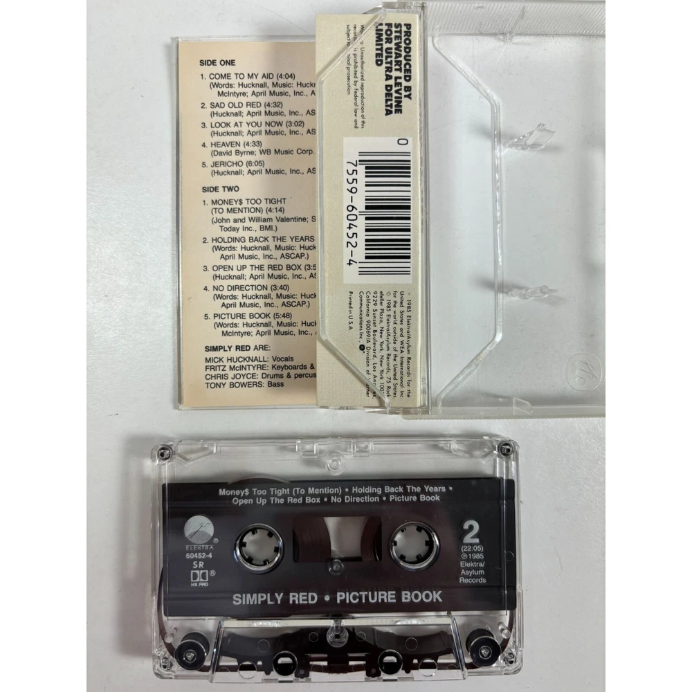 • Artist: Simply Red • Album: Picture Book • Format: Cassette Tape • Side One: 6 Tracks • Side Two: 5 Tracks • Produced By: Stewart Levine • Label: Elektra