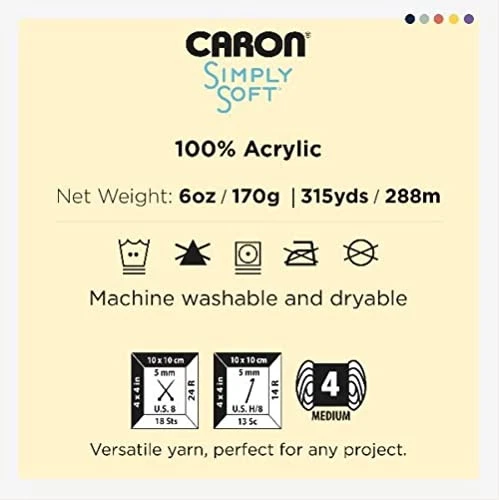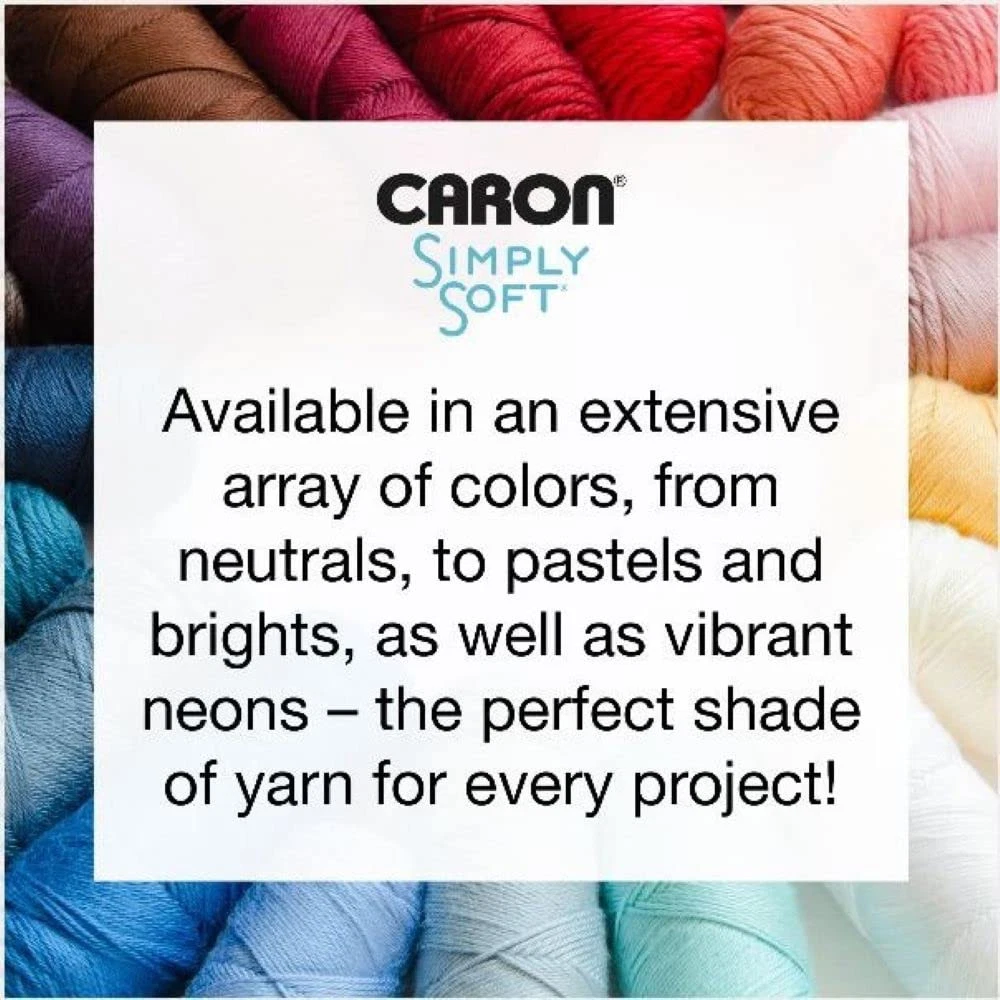 Time to party with Simply Soft Party! Featuring a tone-on-tone sparkle, Simply Soft Party yarn is everything that you love about the Simply Soft family, and more! With a hint of metallic, Simply Soft Party yarn is shiny, and still supremely soft to the touch. Add some sparkle to garments, and accessories. Conveniently machine washable and dryable for easy care. Content: 99% Acrylic, 1% Metallic. This yarn is great for knitting, crocheting, amigurumi and craft projects. Easy to care for: machine wash and dry. Ball Size: 85g / 3 oz, 150 meters / 164 yards Gauge:#4 Worsted (Medium). Knitting Gauge: 4” x 4” (10 cm x 10 cm) 16 sts x 20 rows with 5 mm knitting needle ,Crochet Gauge: 4” x 4” (10 cm x 10 cm) 12 sc x 13 rows with 5 mm crochet hook yarn takes color inspiration from everywhere, making it easy for you to find the perfect color for your project – or inspire you to try something new! Check out the many kinds of yarns and discover a versatile yarn for knit and crochet patterns like sweaters, blankets, pillows, accessories, and more! Time to party with Simply Soft Party! Featuring a tone-on-tone sparkle, Simply Soft Party yarn is everything that you love about the Simply Soft family, and more! With a hint of metallic, Simply Soft Party yarn is shiny, and still supremely soft to the touch. Add some sparkle to garments, and accessories. Conveniently machine washable and dryable for easy care.
