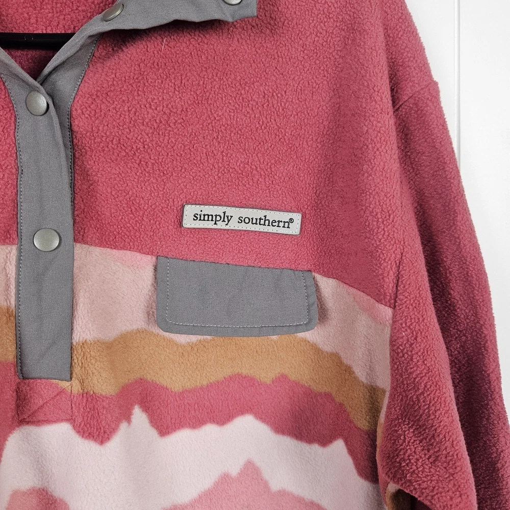 Simply Southern Fleece T Snap Pullover Pink Mauve Womens XL Mountain Pattern Cozy Layer Fall Winter Good pre-owned condition